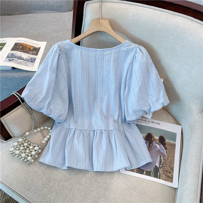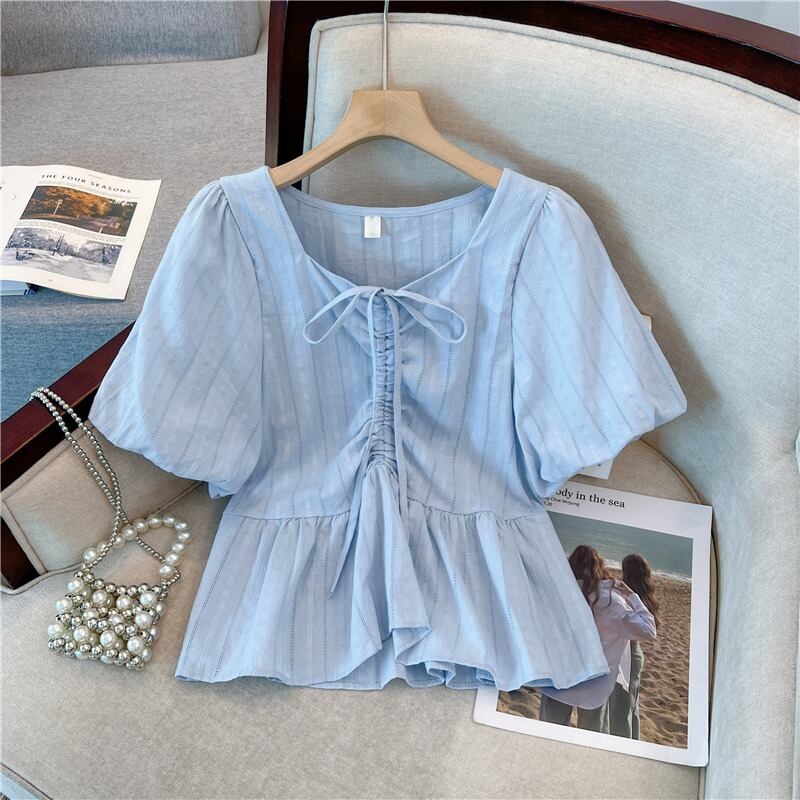 プラスサイズの婦人服 2023 トレンディな女性の夏の新しいスタイルの脂肪姉妹バージョン肉をカバーし、薄い巾着ファッション デザイン半袖シャツを表示します。 大きめサイズ サマー 夏物 8884113566718631