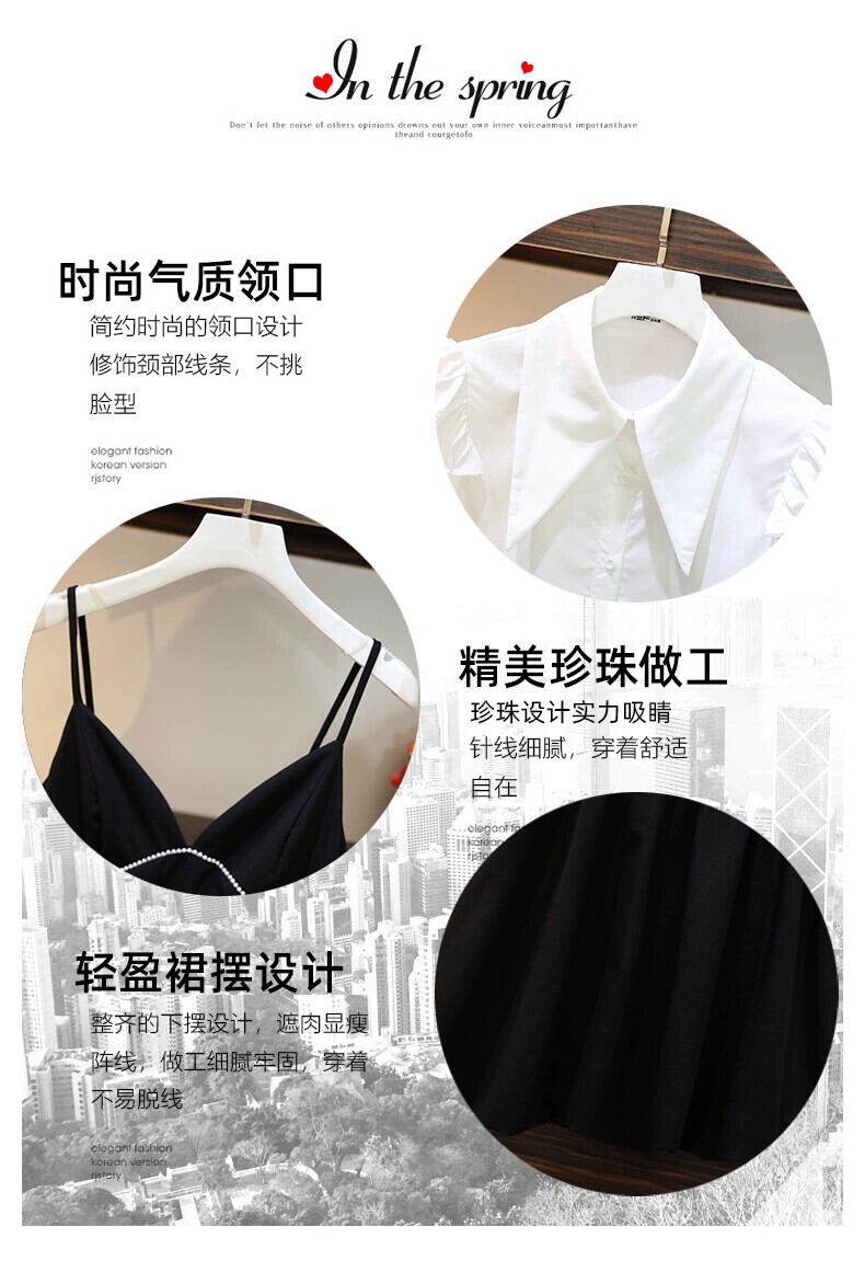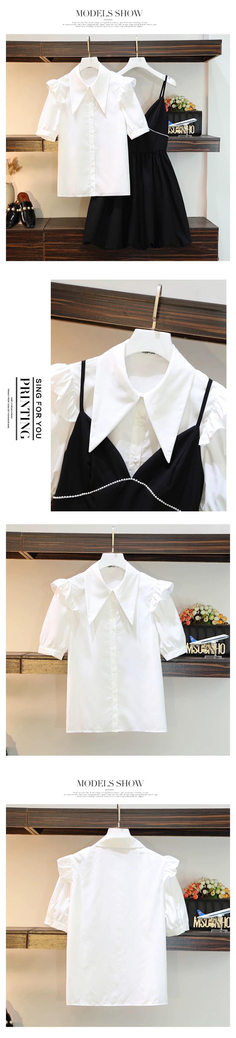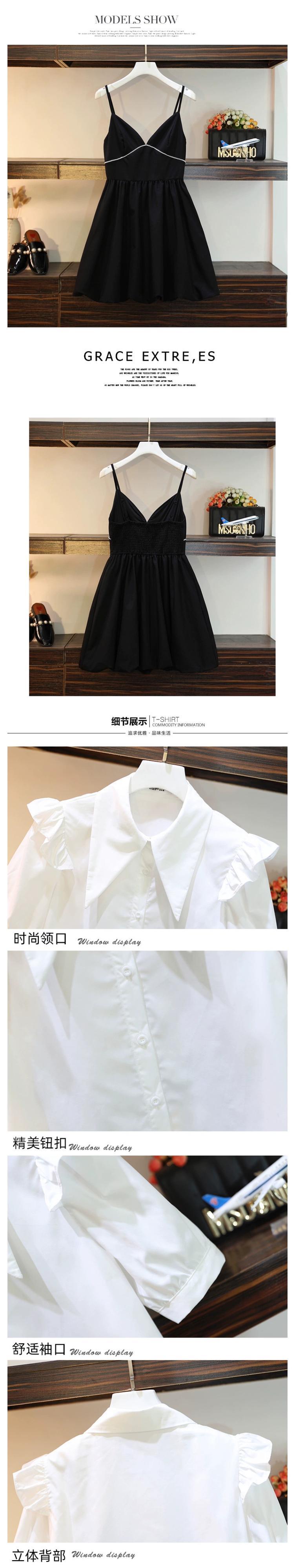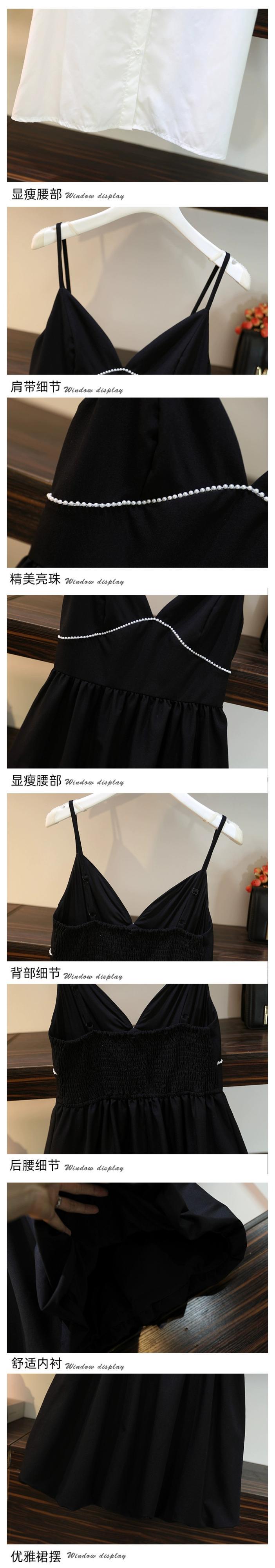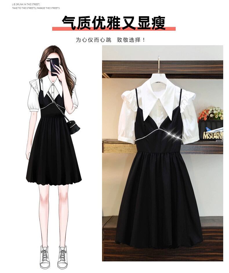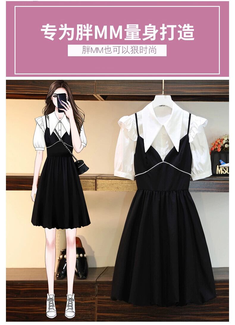 プラスサイズの婦人服 2023 流行の女性の夏の新しいファットシスターオールマッチ薄型シャツウエストサスペンダードレス 2 点セット 大きめサイズ サマー 夏物 8884148313794723