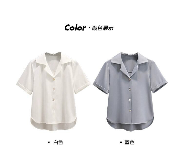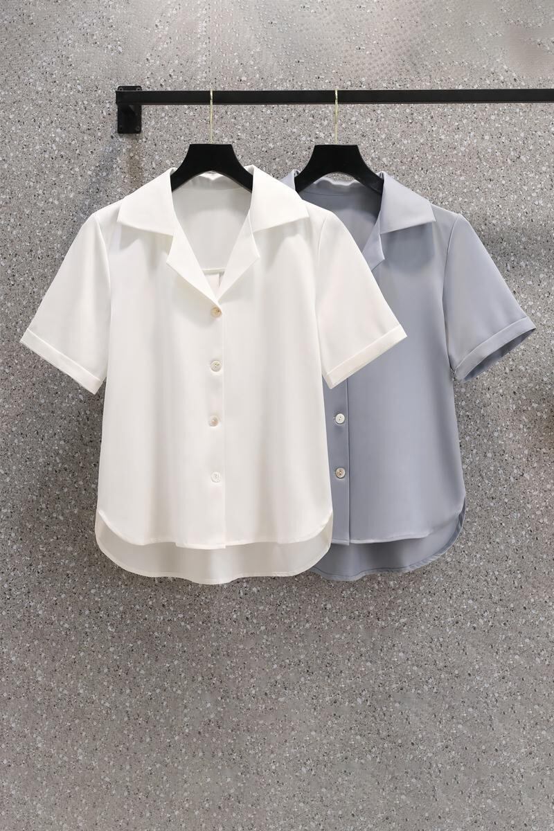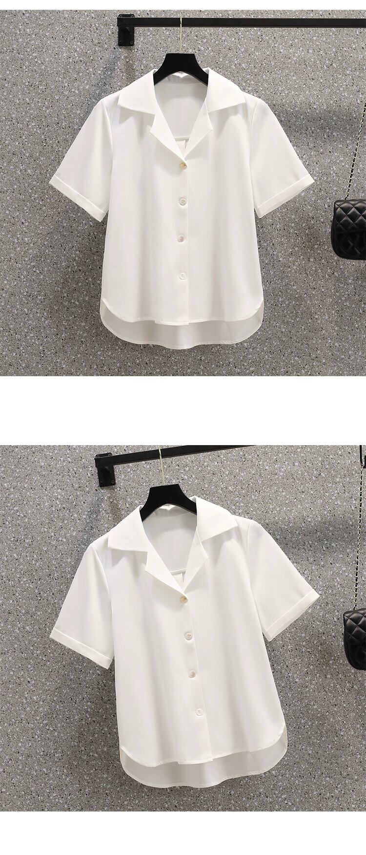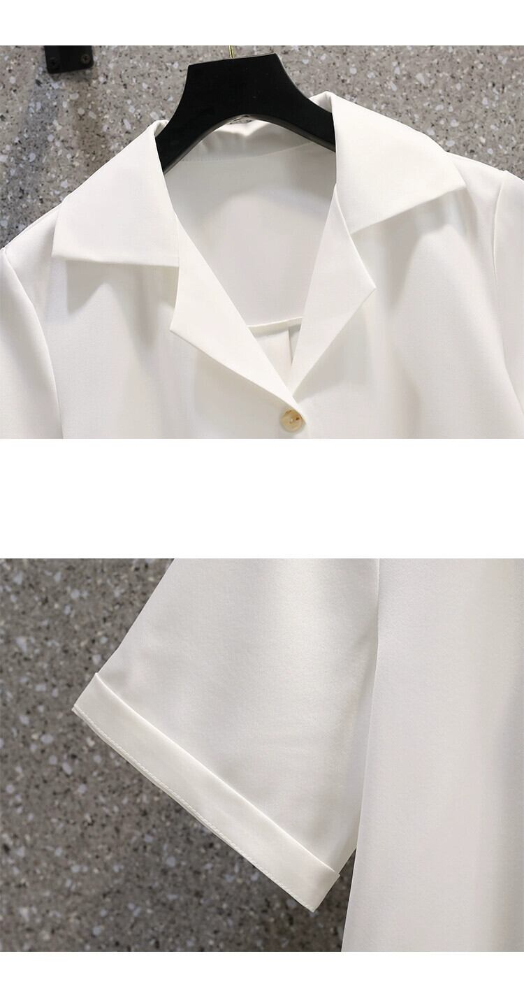 プラスサイズの婦人服 2023 太った妹の夏の新バージョンシンプルでスリムな気質スーツ襟半袖シャツ女性 大きめサイズ サマー 夏物 8884116083398160
