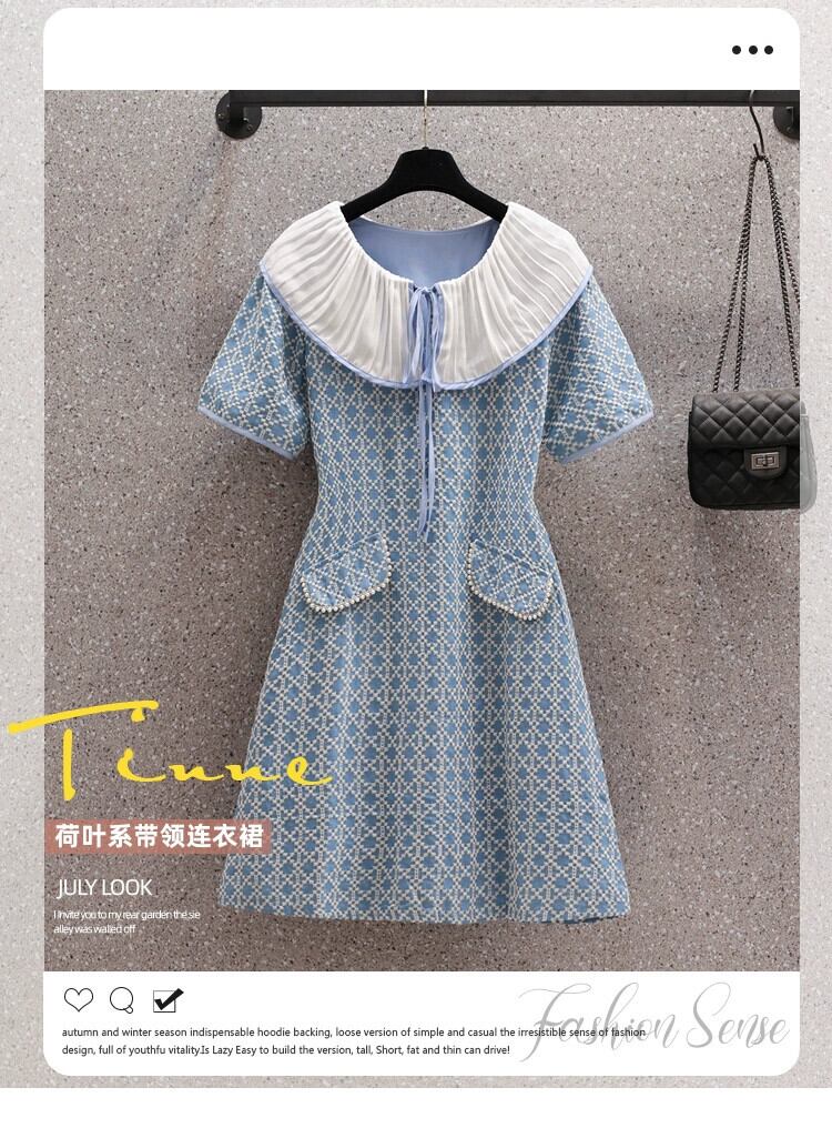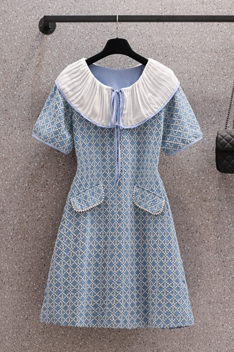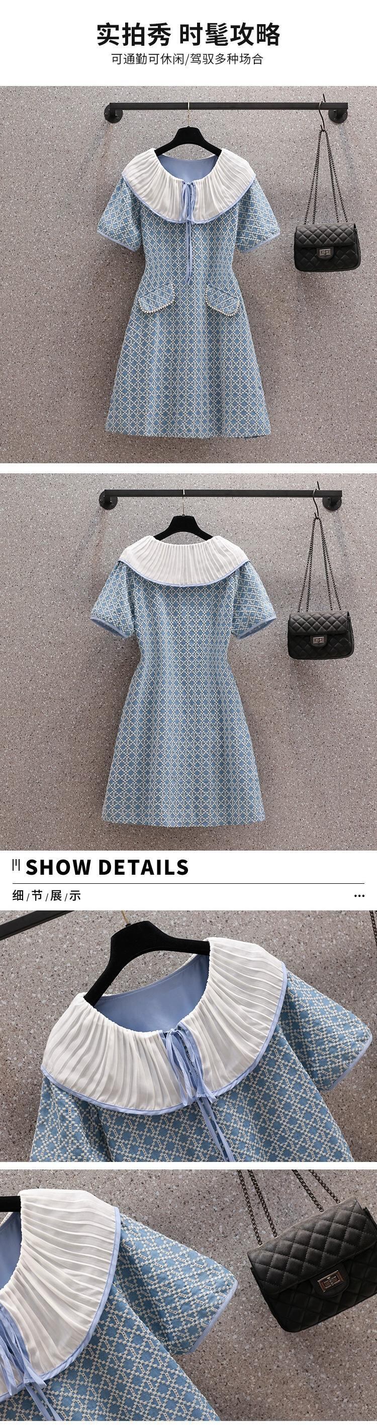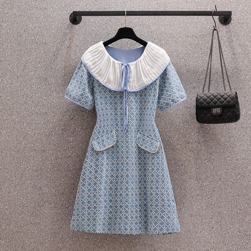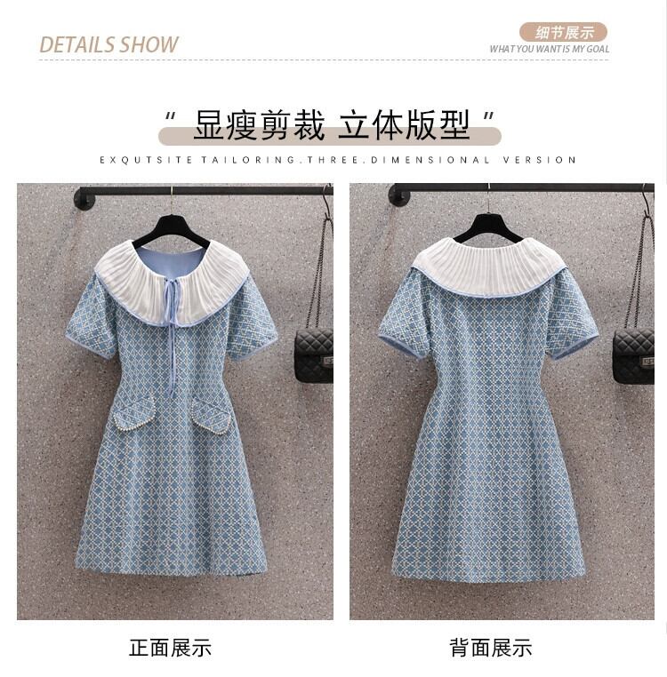 プラスサイズの婦人服 2023 夏服脂肪姉妹気質人形襟スカート緩い痩身オールマッチデザインセンスドレス 大きめサイズ サマー 夏物 8884125164462931