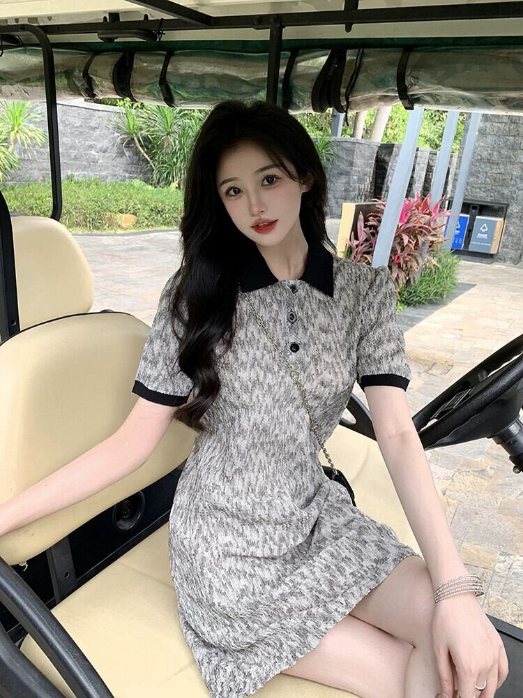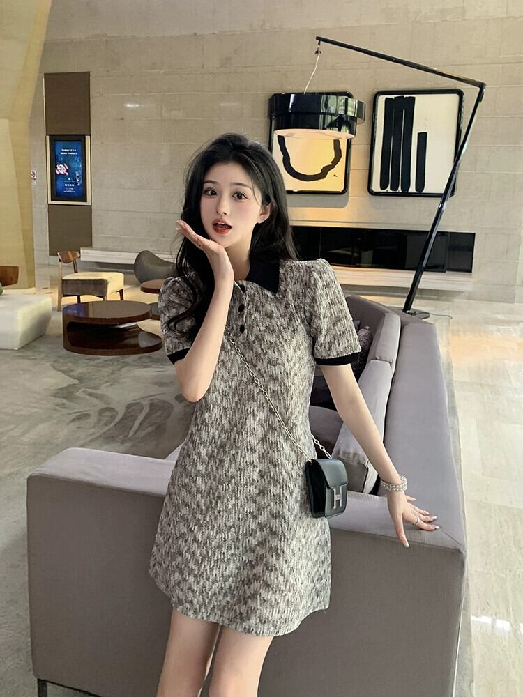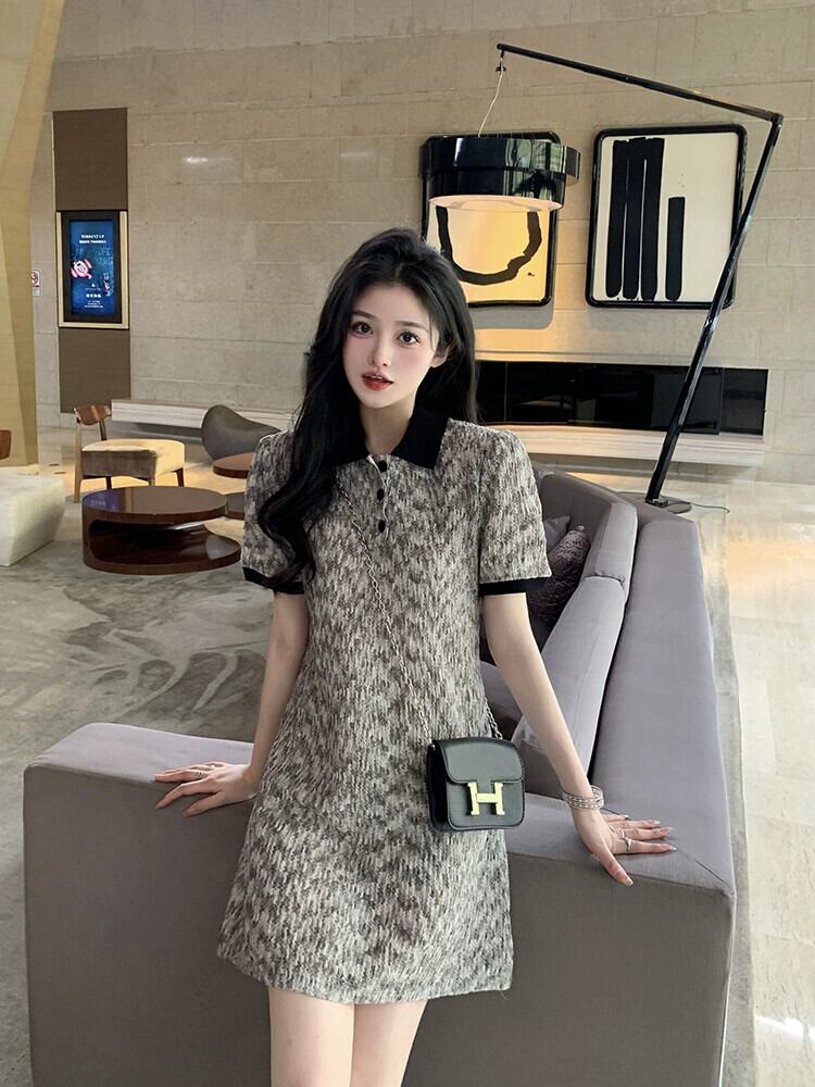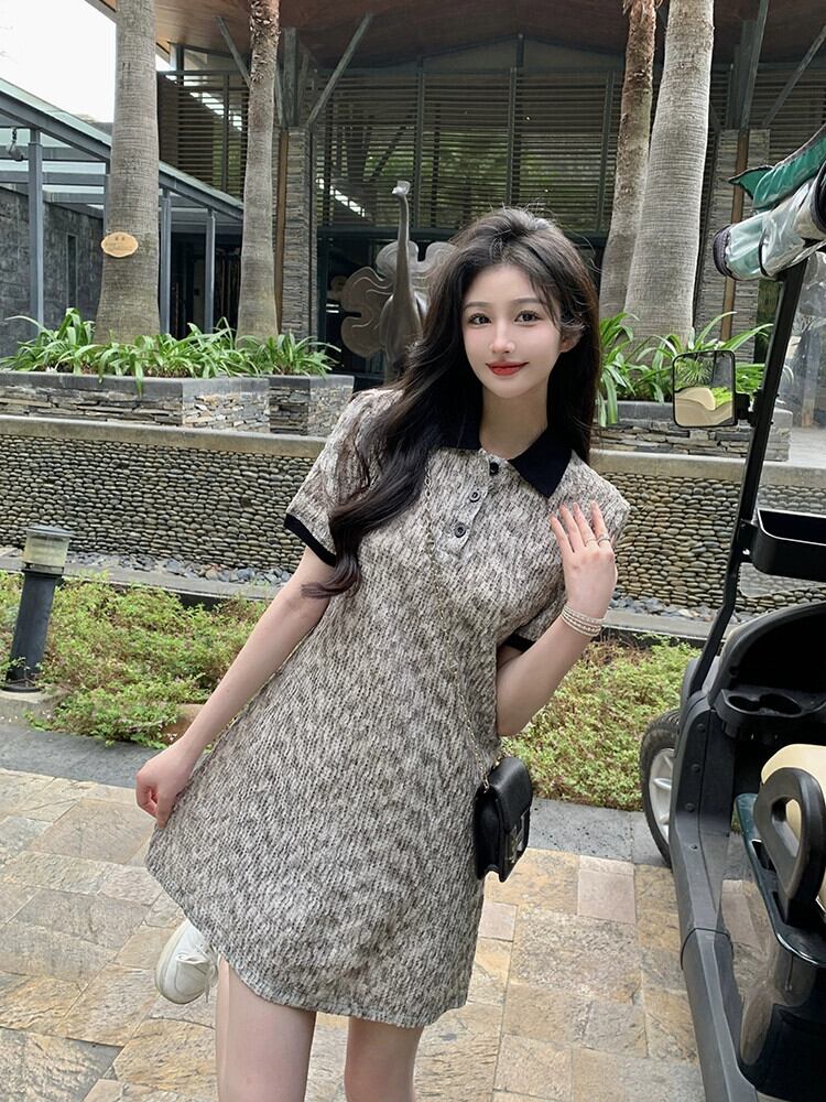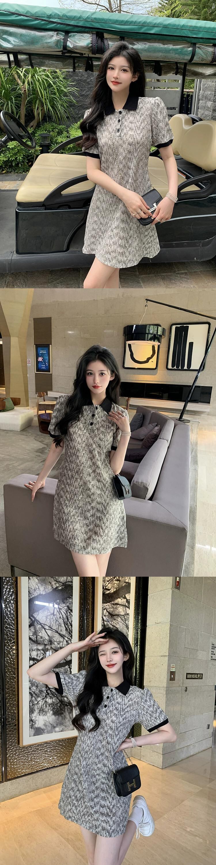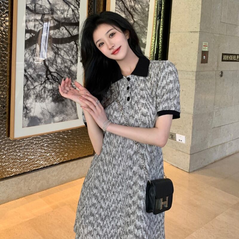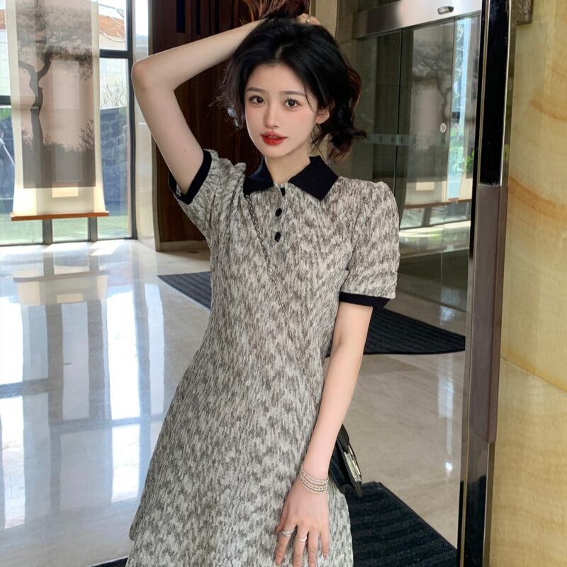 プラスサイズの婦人服 2023 脂肪姉妹夏レトロ薄いフランスの花柄スカートヒットカラーポロカラードレス 大きめサイズ サマー 夏物 8884182361757305