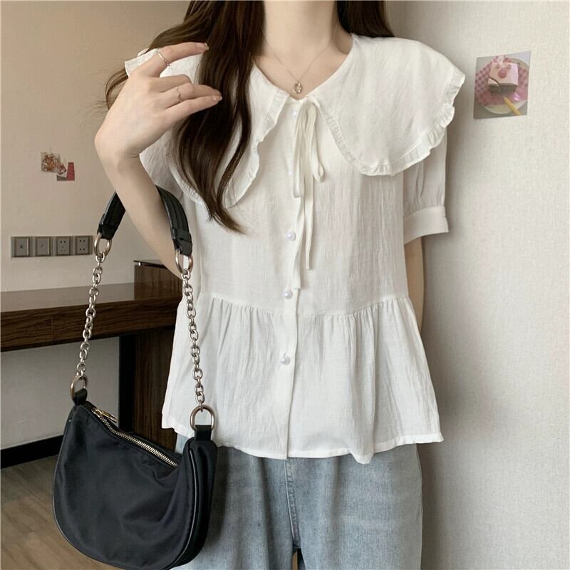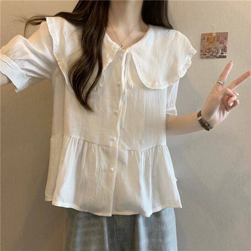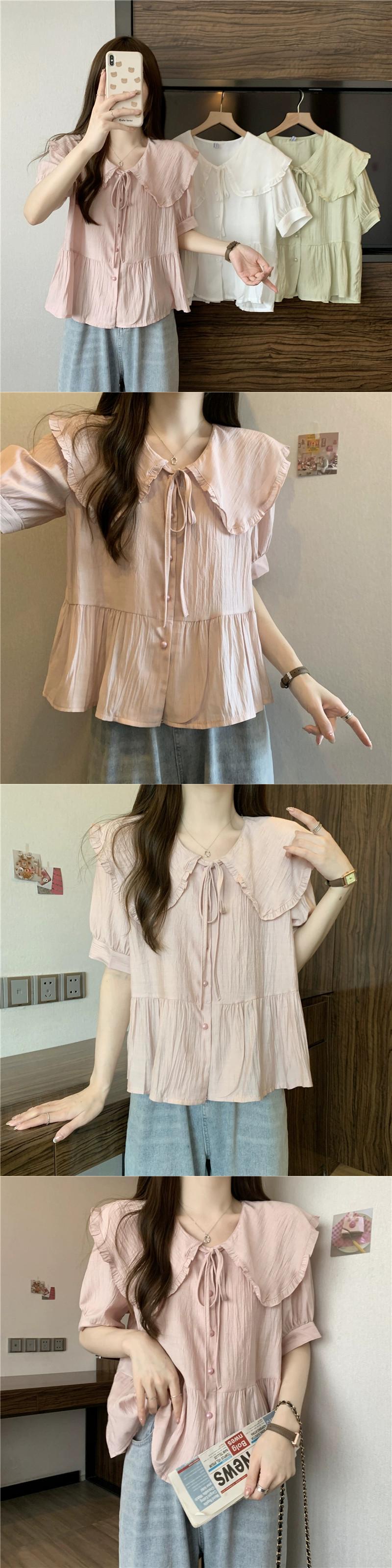 大きいサイズの婦人服脂肪姉妹夏の新しいファッション半袖デザインシャツシフォンシャツトップ痩身シャツ 大きめサイズ サマー 夏物 8884185697989698