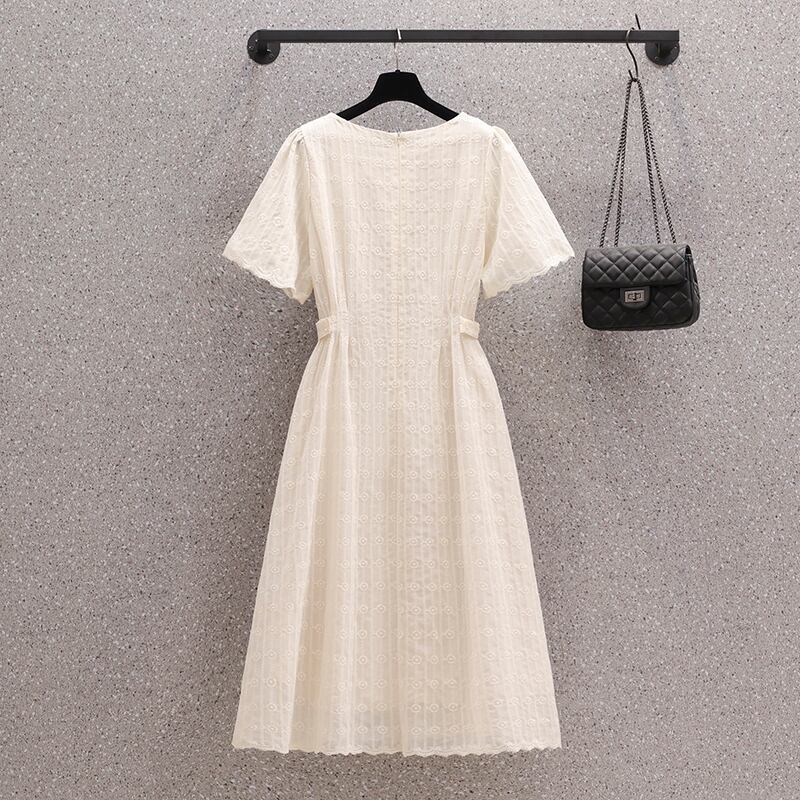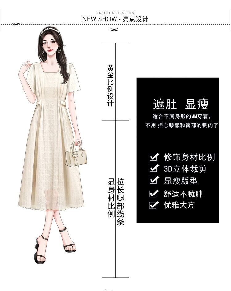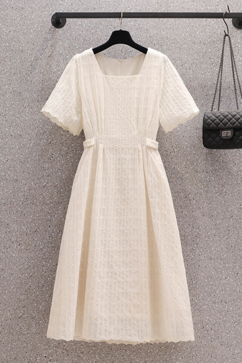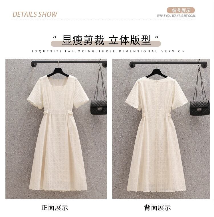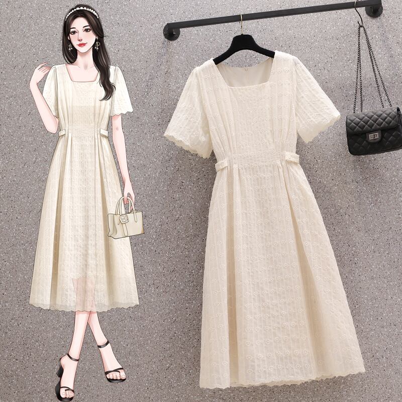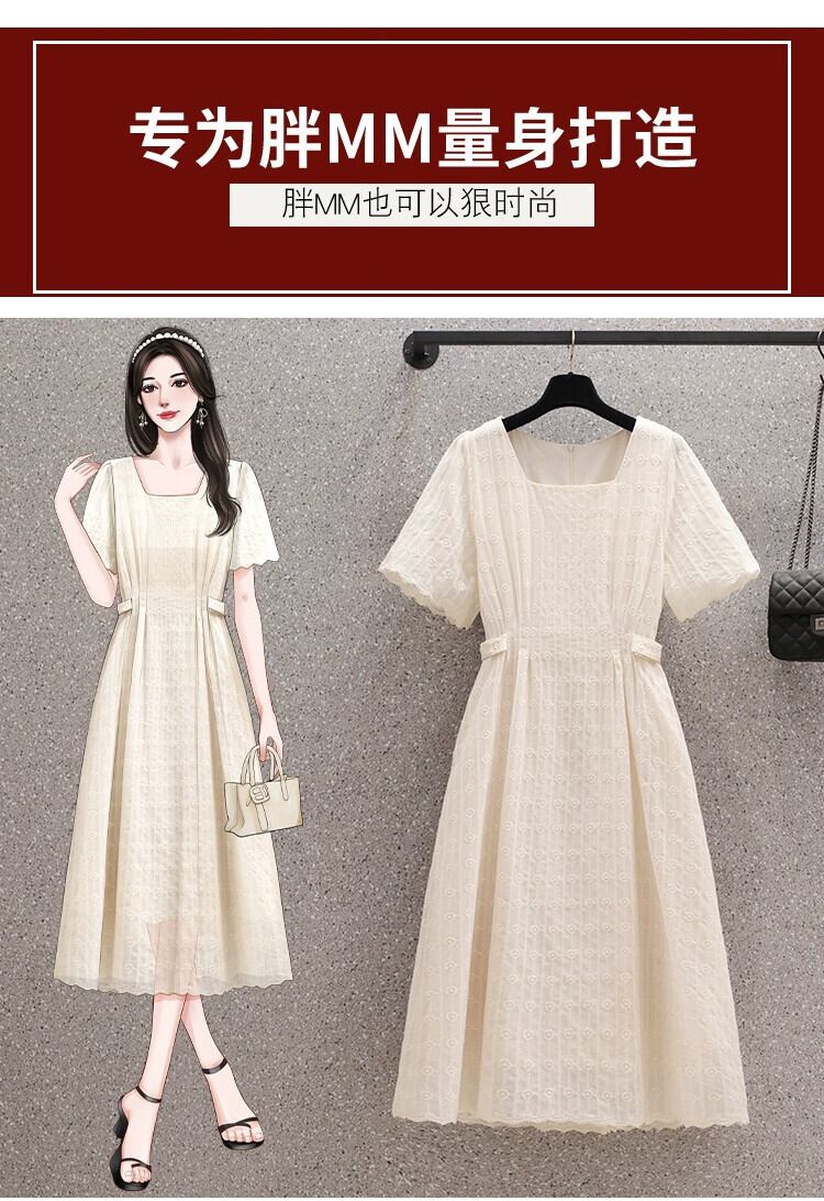 プラスサイズの婦人服 2023 夏のドレス太った姉妹気質スクエアカラーデザインミッドレングススカート年齢を軽減するフレンチカジュアルドレス 大きめサイズ サマー 夏物 スクウェア 8884127450561984