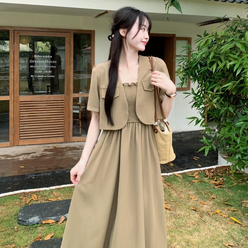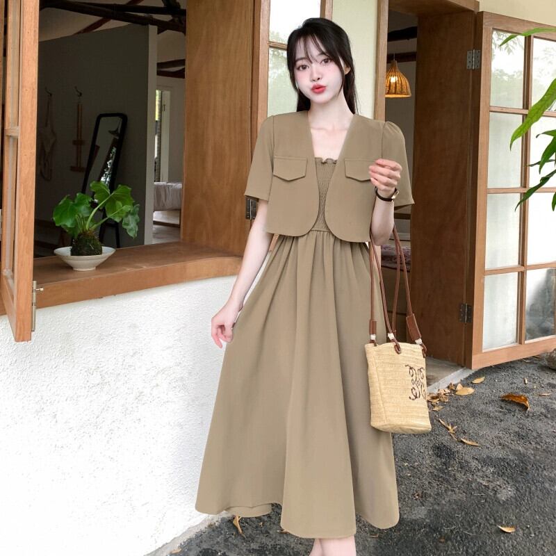 プラスサイズの婦人服 2023 流行の夏の新しいファットシスターデザインセンススーツオールマッチ小さなコートドレス 2 点セット女性 大きめサイズ サマー 夏物 8884157158712486