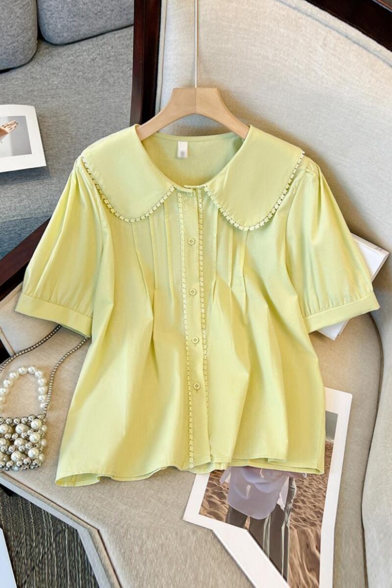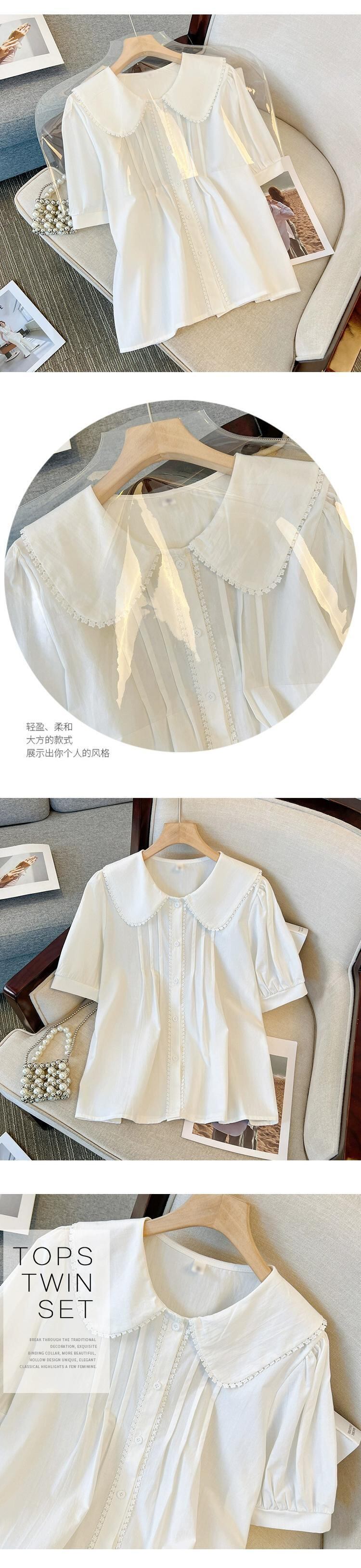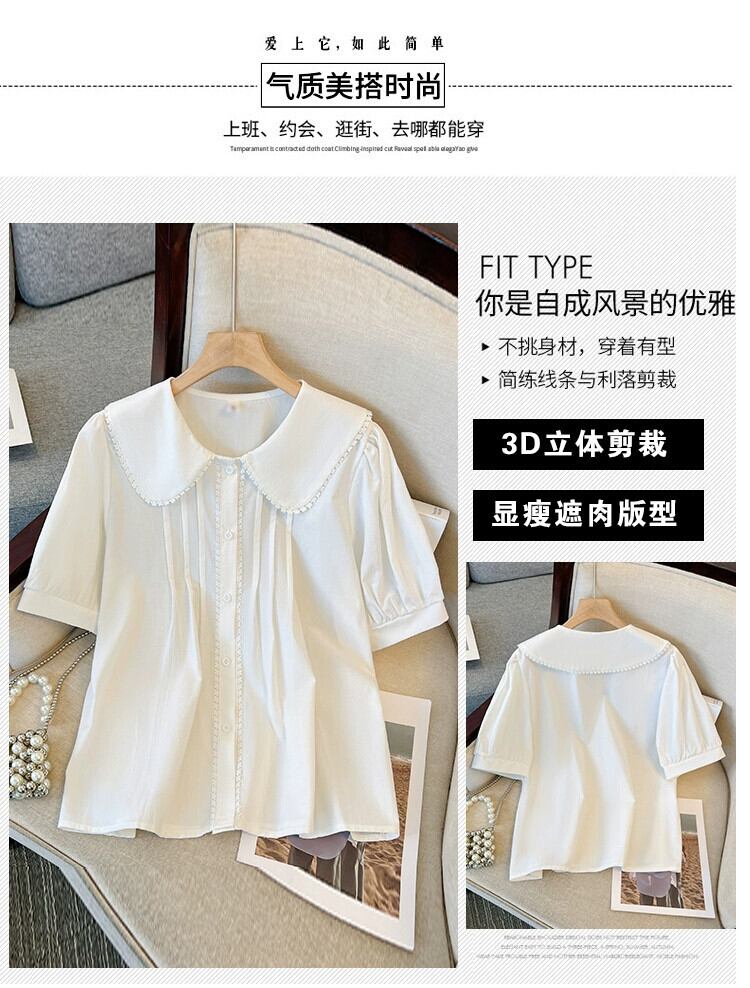 プラスサイズの婦人服 2023 ファットシスター夏新スタイル eign スタイルファッションカジュアルスリム半袖人形襟シャツトップ 大きめサイズ サマー 夏物 8884148419286910