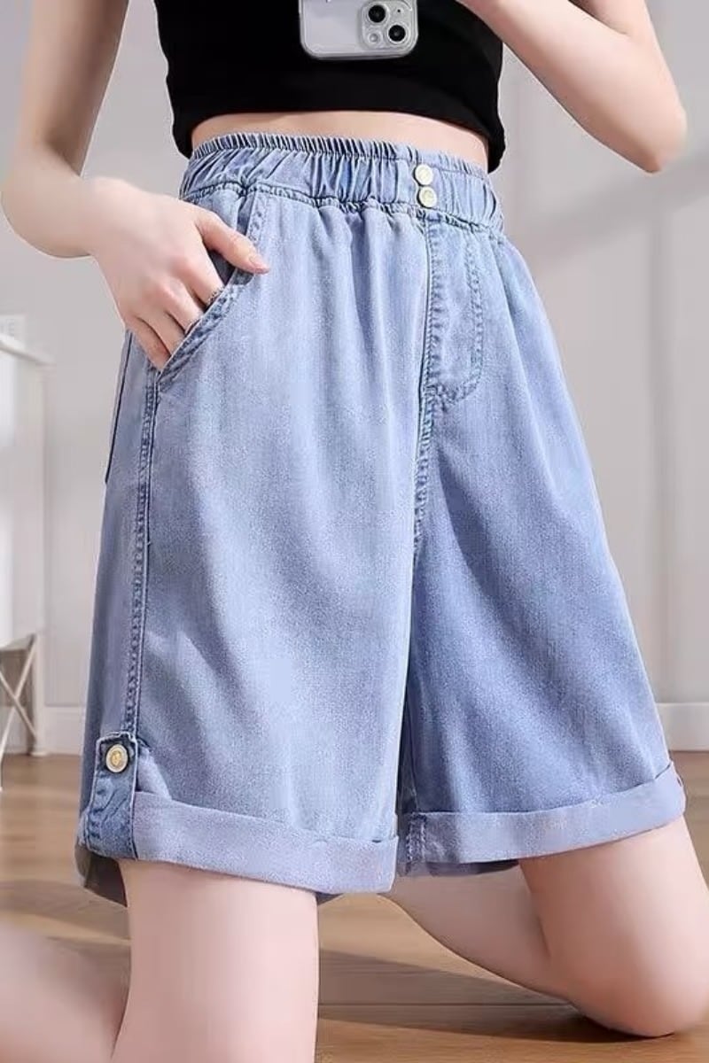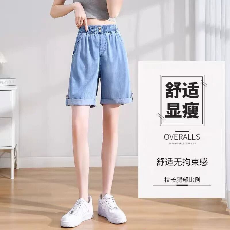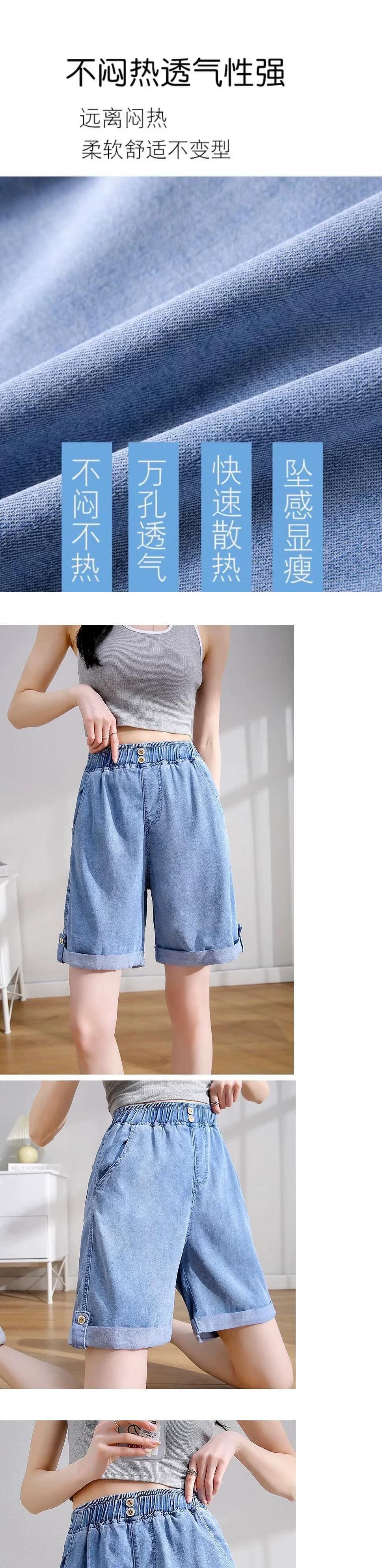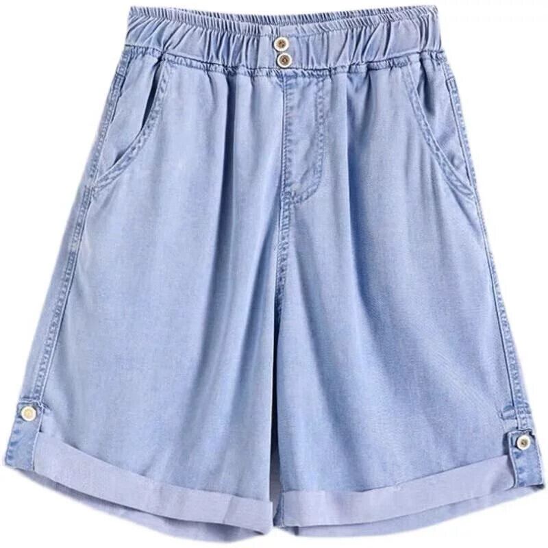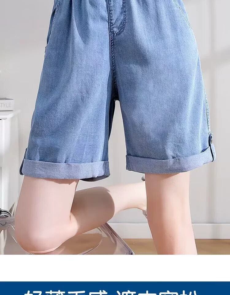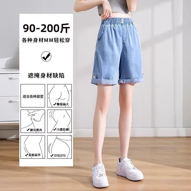 プラスサイズの婦人服 2023 ファットシスター夏の新しいワイドレッグパンツルーズドレープ薄いセクションカジュアルテンセルデニムショートパンツ 大きめサイズ サマー 夏物 ショーツ ブルマー 8884110775038799