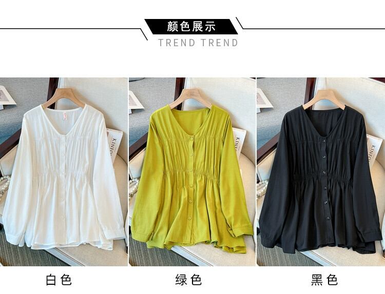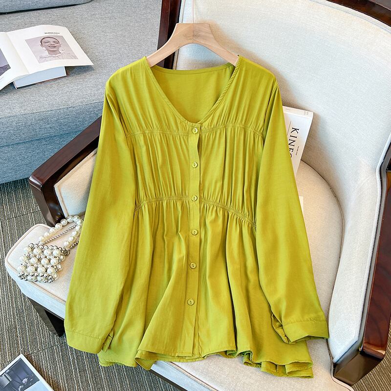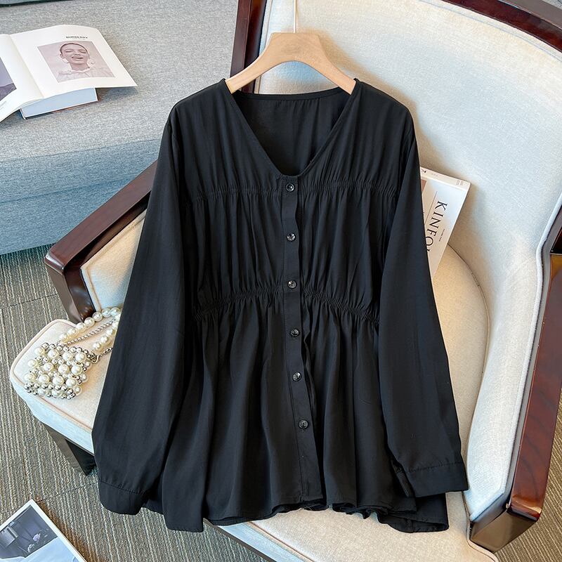 プラスサイズの婦人服 2023 春服脂肪姉妹新しい長袖ファッション薄いトップスカバー腹オールマッチシャツ女性 ロング 大きめサイズ スプリング 春物 888417008511718