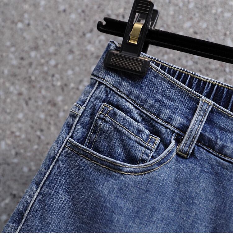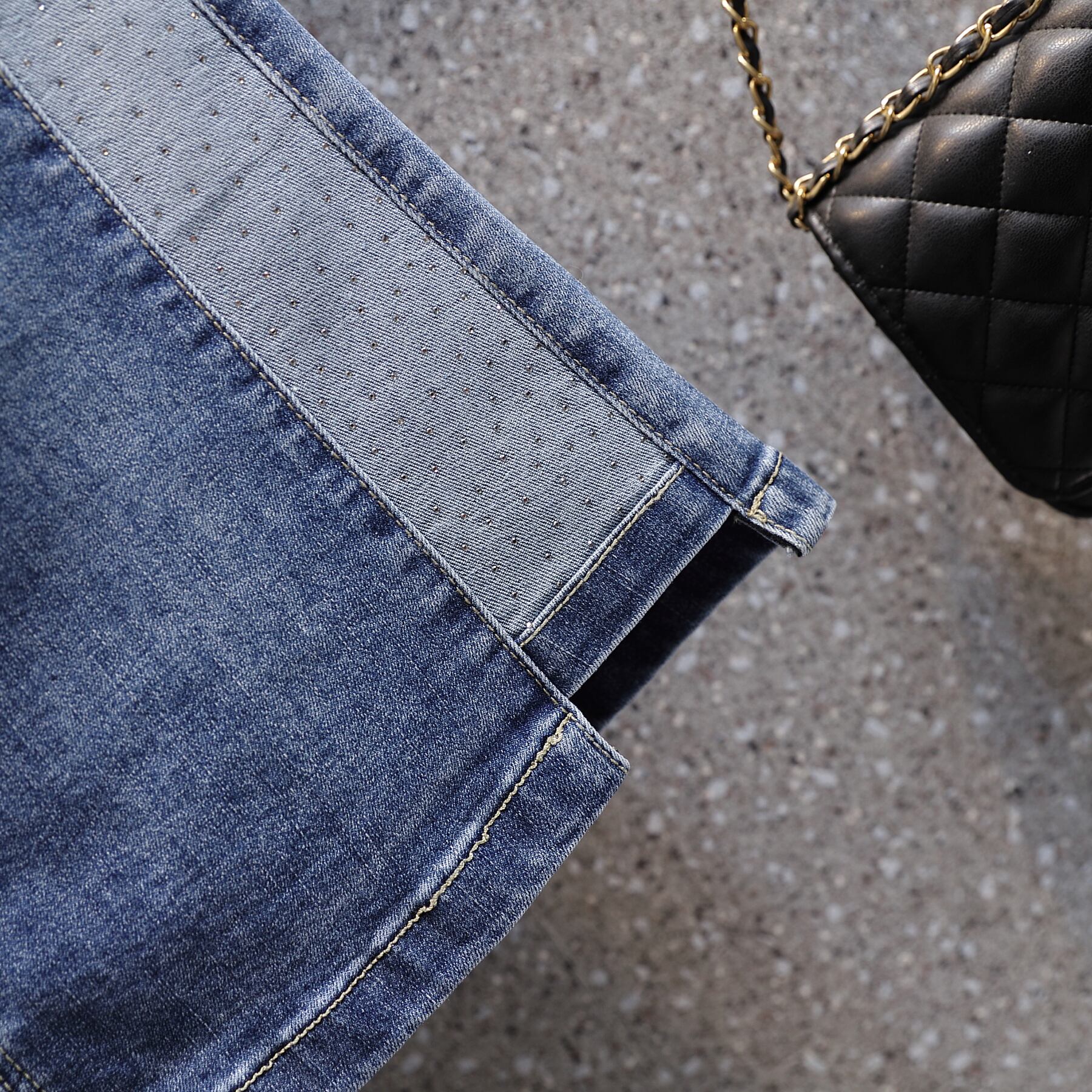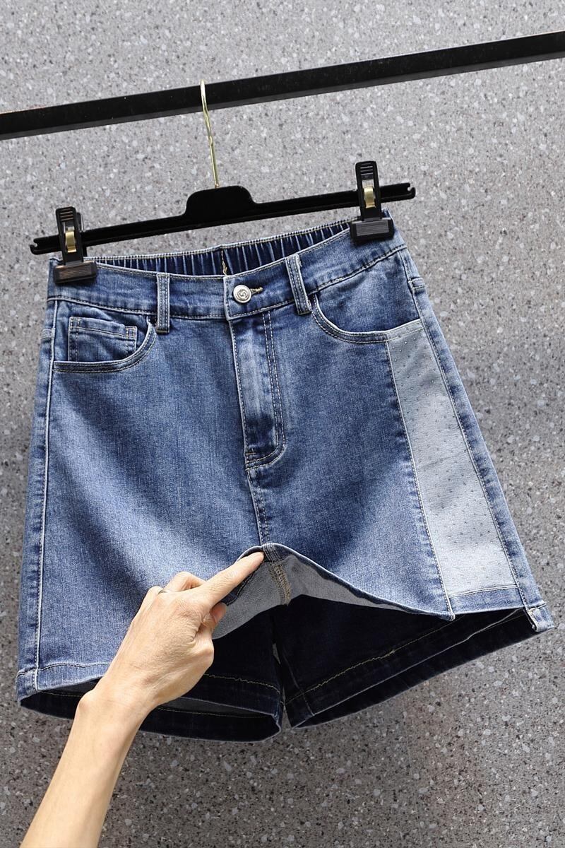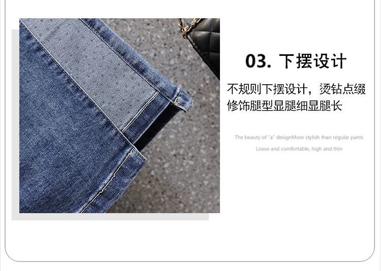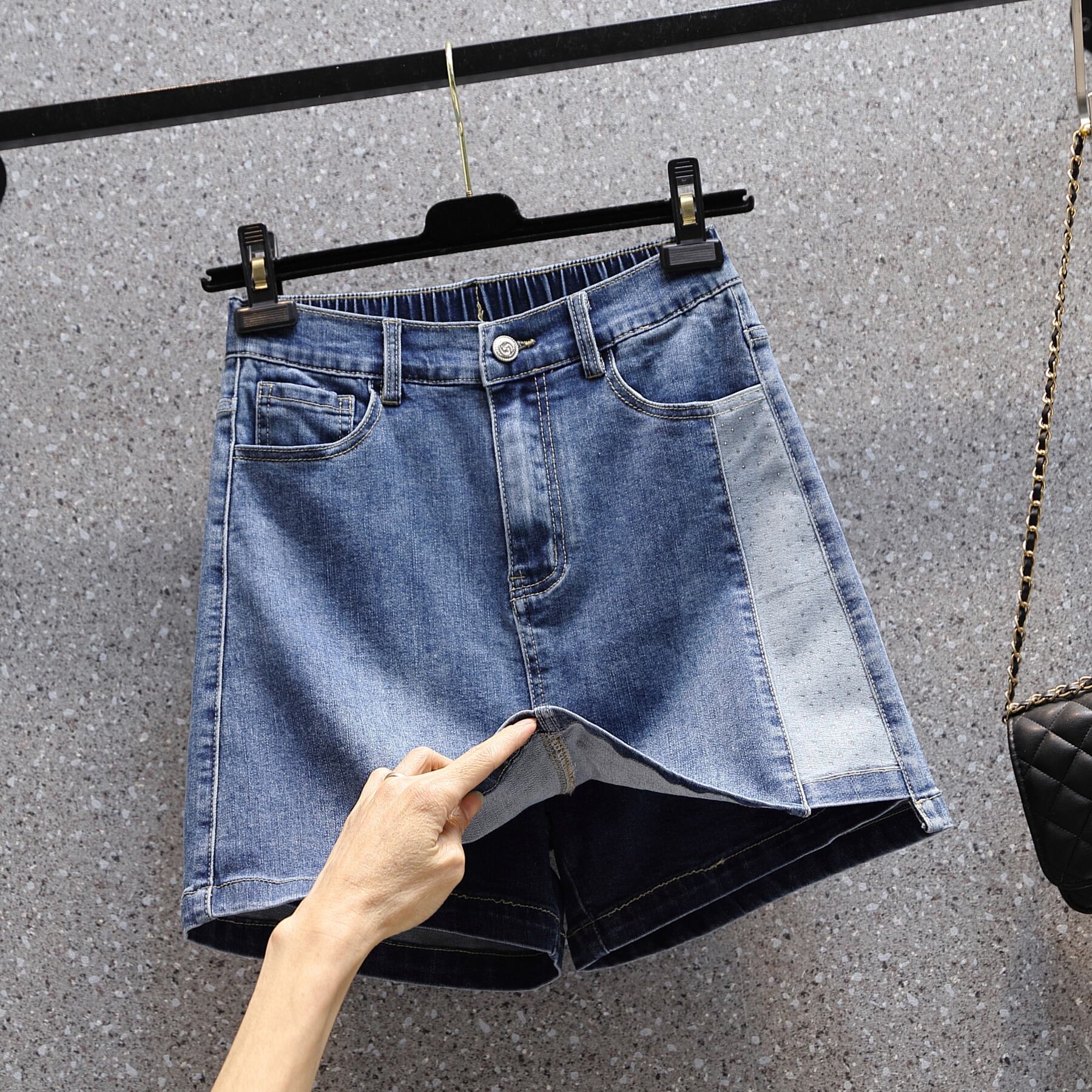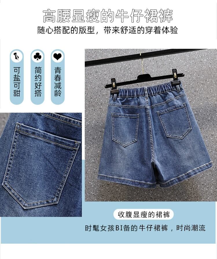 プラスサイズの婦人服 2023 夏服脂肪姉妹気質ハイウエストスカートパンツシックな弾性カジュアルデザインジーンズ ハイウェスト エラスティック 伸縮 大きめサイズ サマー 夏物 8884151302030385