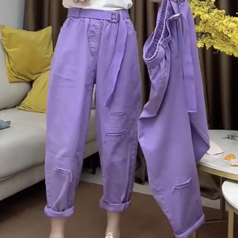 プラスサイズの婦人服 2023 脂肪姉妹夏の新ファッションスリムリッピングジーンズ 9 点カジュアルパンツハーレムパンツ 大きめサイズ サマー 夏物 8884181116359300
