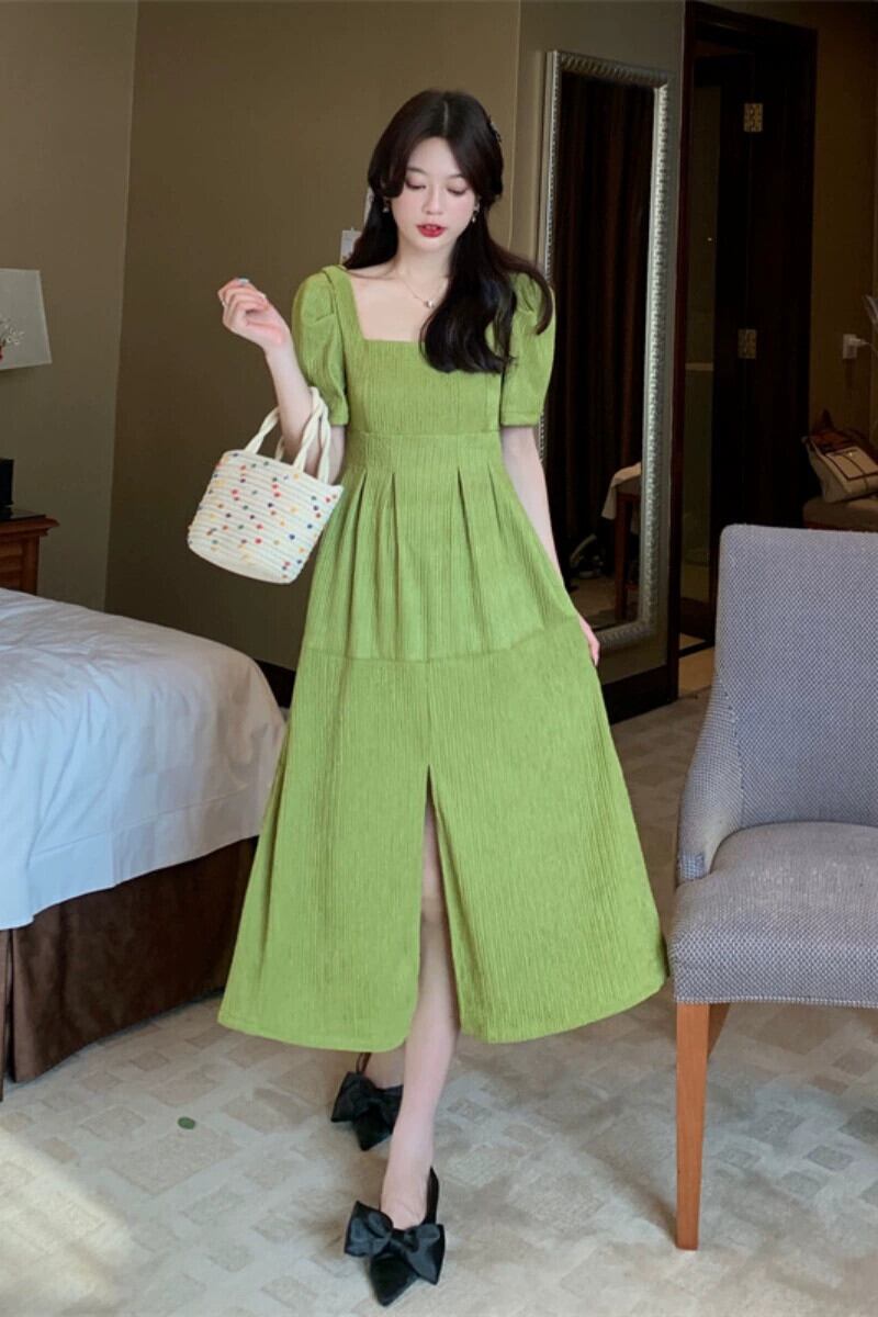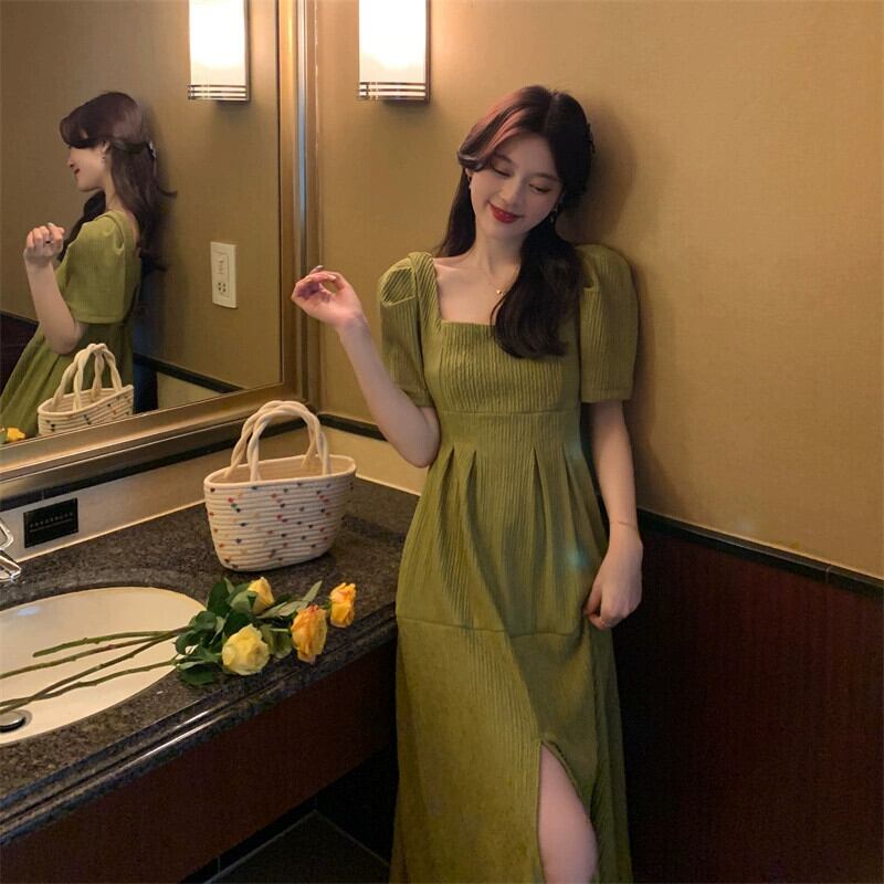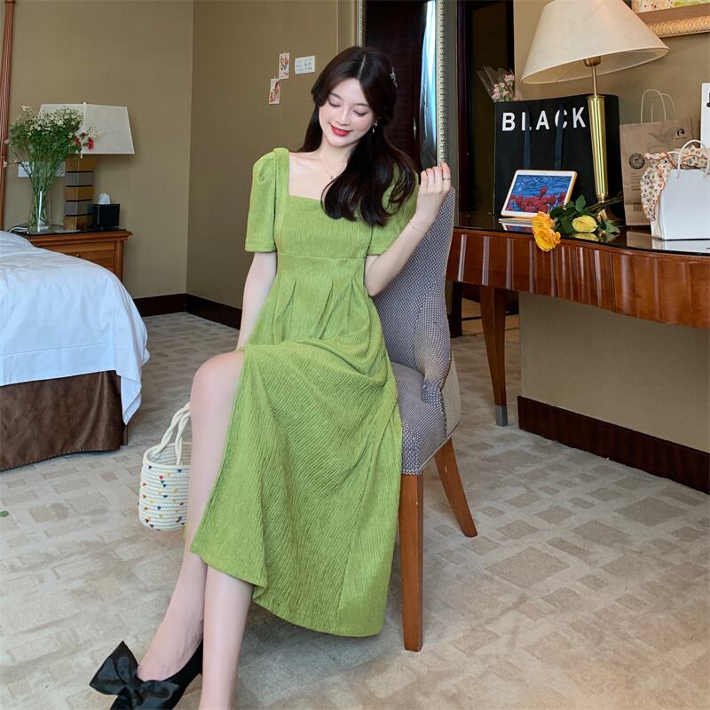 プラスサイズの婦人服 2023 脂肪姉妹夏新チベット肉痩身ミッドレングススカートスクエアカラープリーツドレス 大きめサイズ サマー 夏物 スクウェア 888419442346638