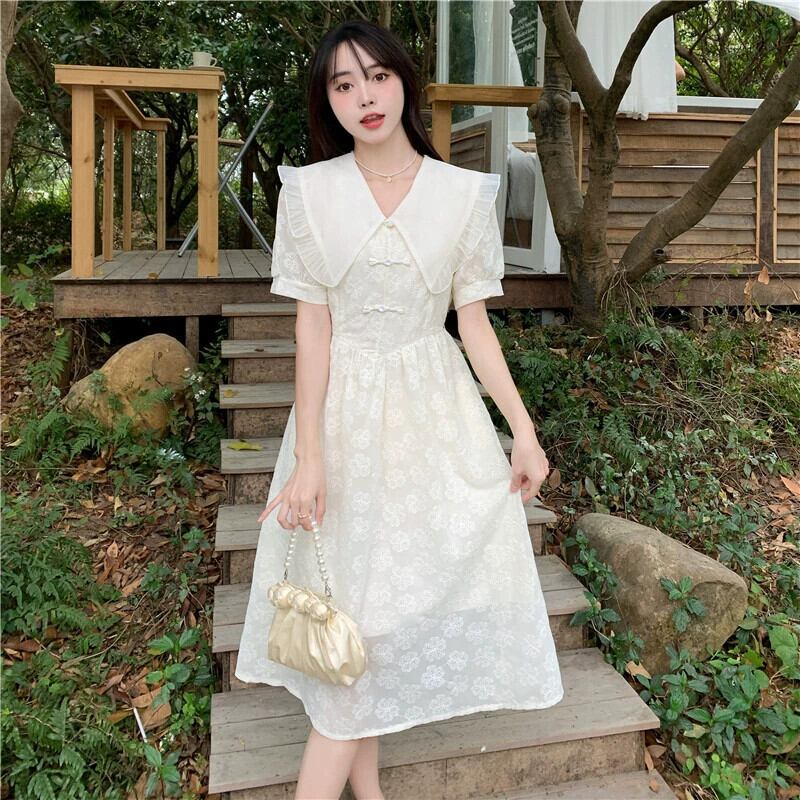 プラスサイズの婦人服 2023 脂肪姉妹夏の新しいフレンチスタイルの薄くて長いスタイルのデザインラペル刺繍ドレス ロング レッド 大きめサイズ サマー 夏物 8884116071123882