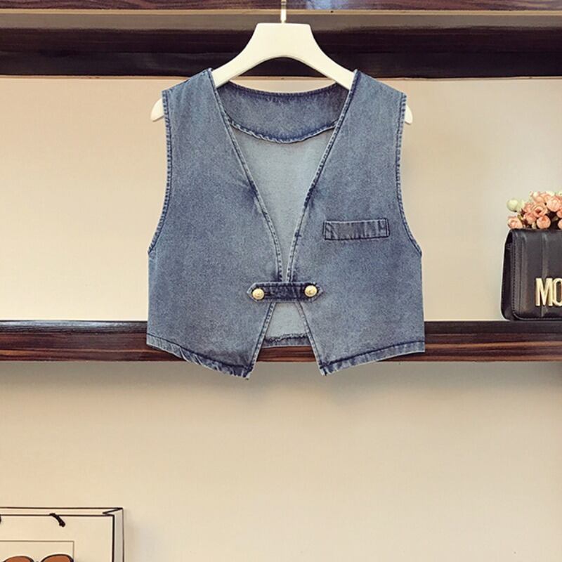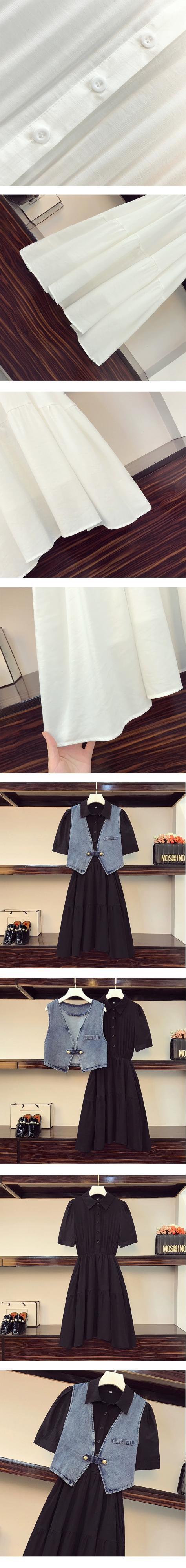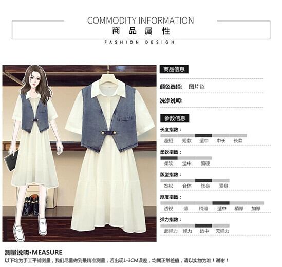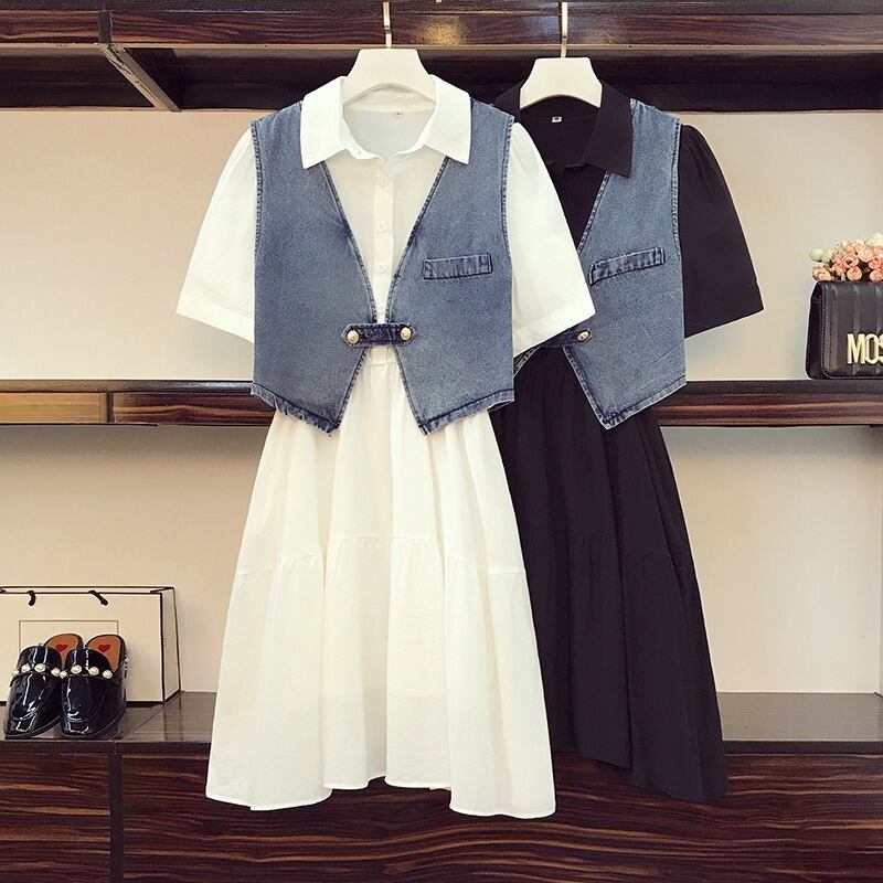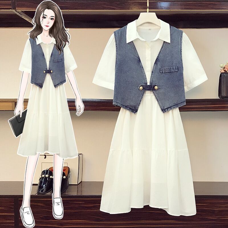 プラスサイズの婦人服 2023 流行の夏の新しいファットシスターオールマッチデザインセンススーツデニムベストドレス 2 点セット 大きめサイズ サマー 夏物 8884111982455727