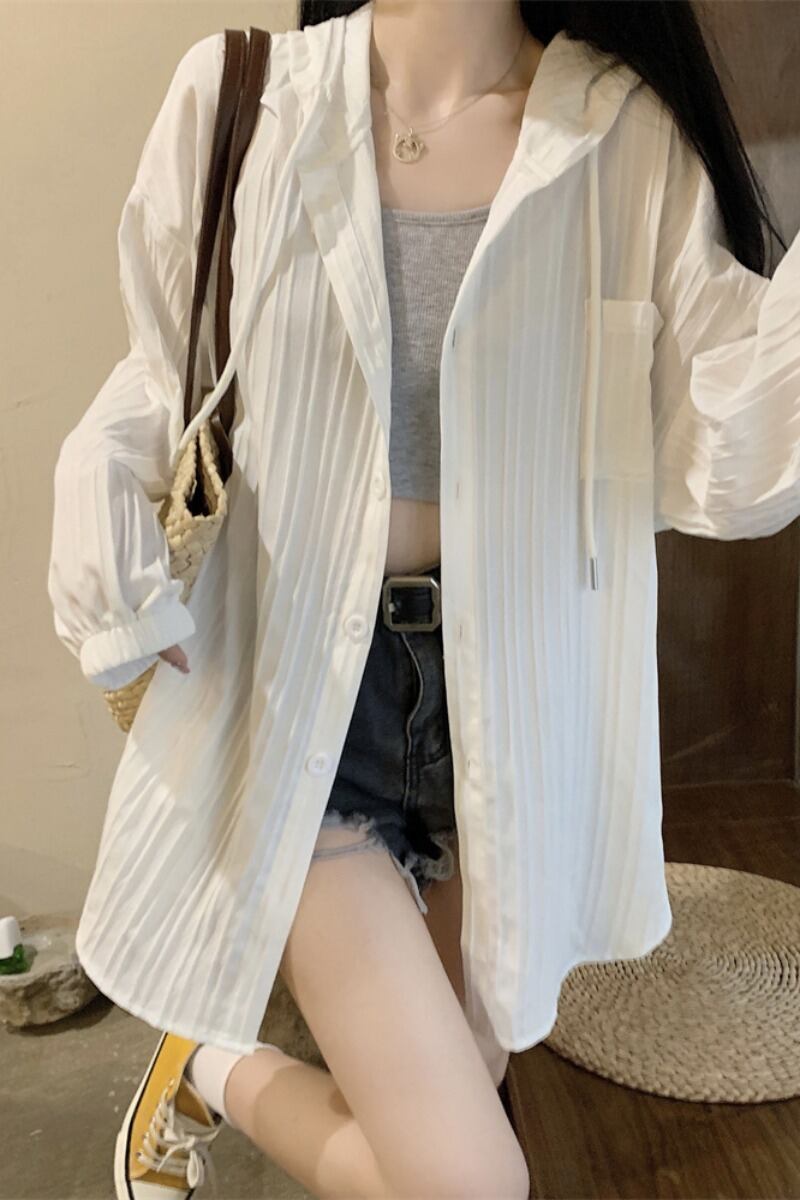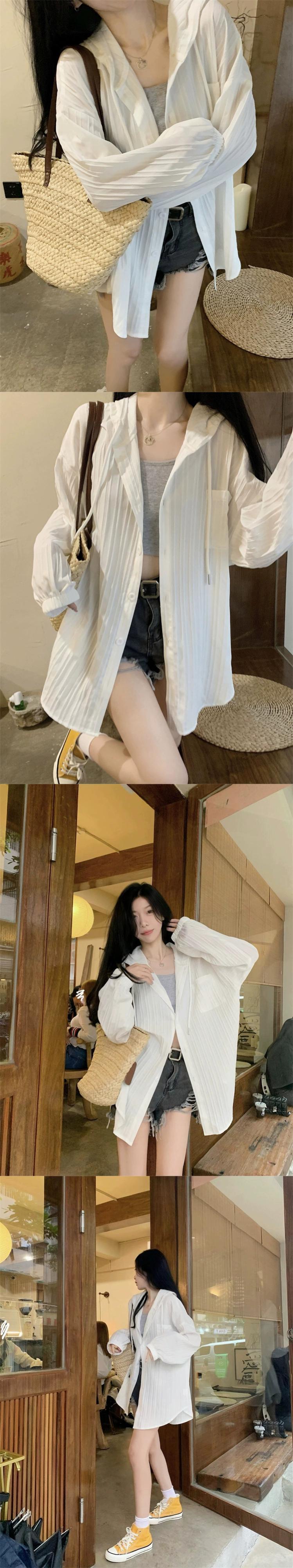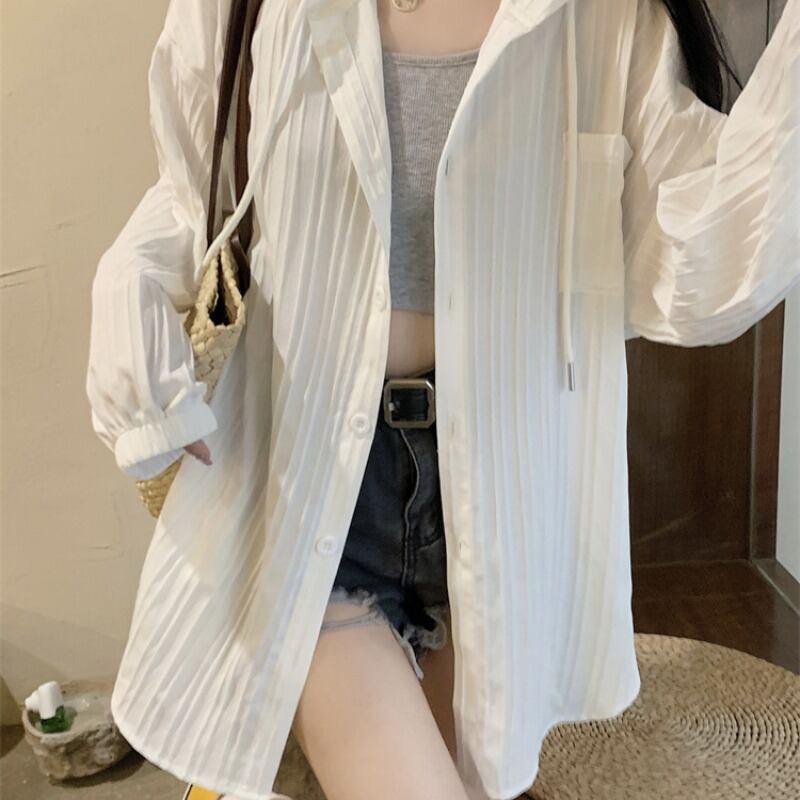 プラスサイズの婦人服 2023 ファットシスター夏日焼け止め服ミッドレングスルーズカーディガンフード付き薄型セクションスリムトップ 大きめサイズ サマー 夏物 888416623638170
