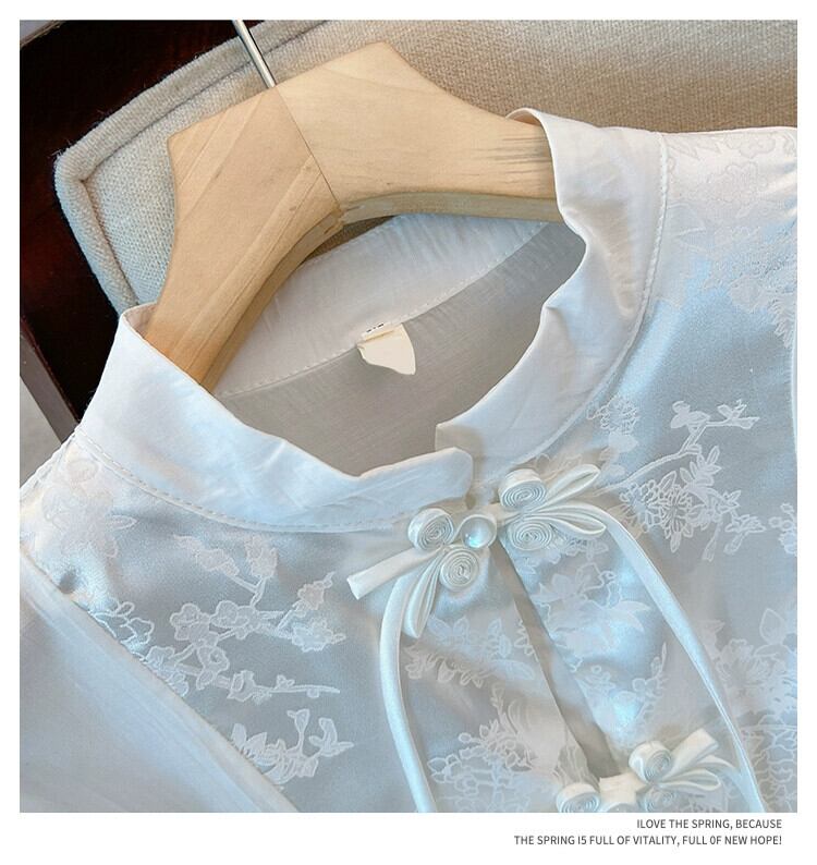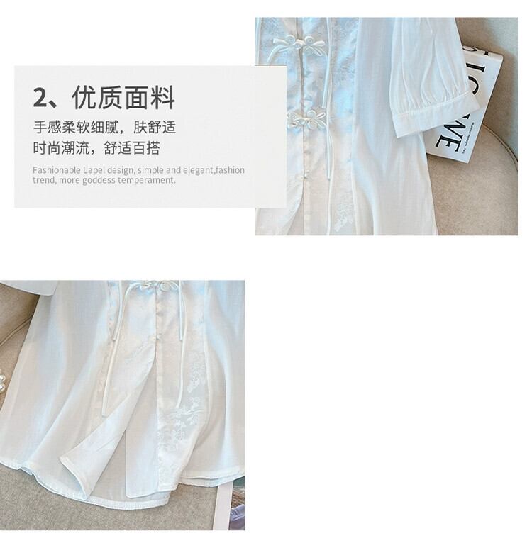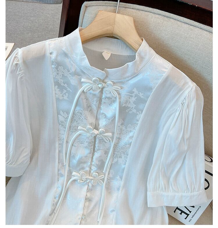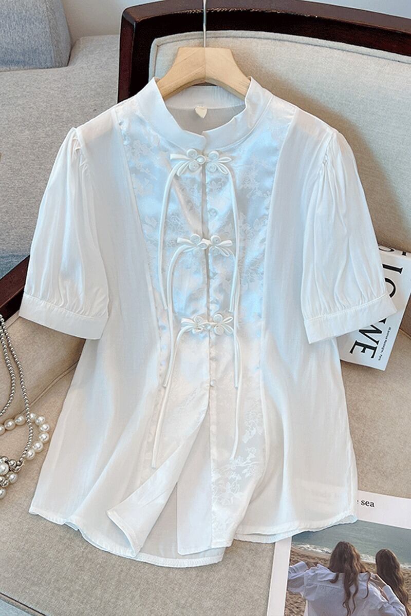 プラスサイズの婦人服 2023 夏服ファットシスターレトロ気質ファッションジャケットニッチデザイン肉感カバースタンドカラーシャツ 大きめサイズ サマー 夏物 8884184997955234