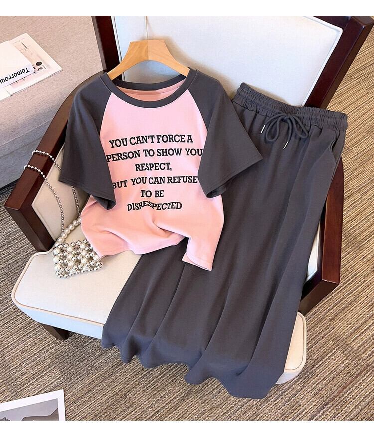 プラスサイズの婦人服 2023 脂肪姉妹夏の新しいファッション薄いプリント半袖 T シャツスカート 2 点セット 大きめサイズ サマー 夏物 Tシャツ 8884179498273158