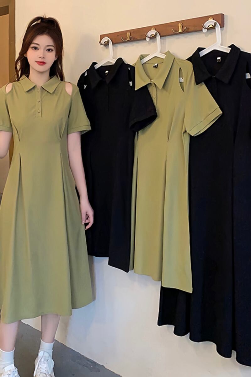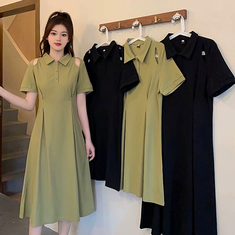 プラスサイズの婦人服 2023 脂肪姉妹夏の新しいファッション A ラインスカートスプライシングオフショルダースリムロングとショートドレス 大きめサイズ サマー 夏物 Aライン 8884148558206183