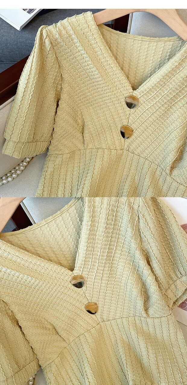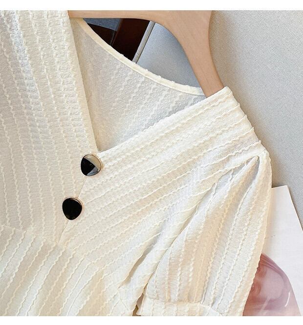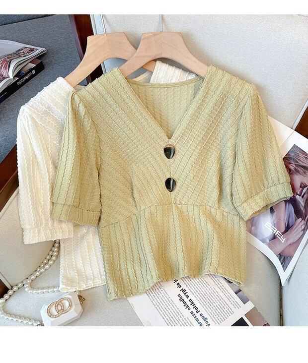 プラスサイズの婦人服 2023 夏の新ファットシスターファッションオールマッチフレンチシャツ半袖 V ネック腹部カバートップ 大きめサイズ サマー 夏物 Vネック 888415526534499