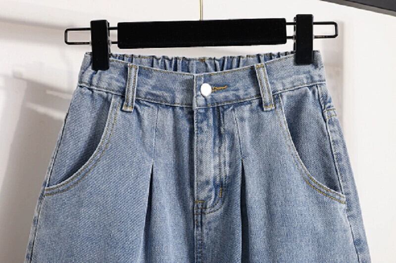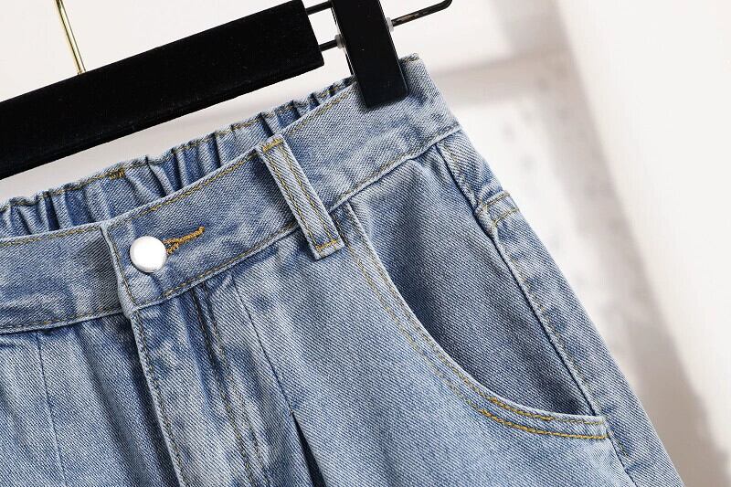プラスサイズの女性の服 2023 夏ドレスファットガールルーズ弾性ウエストワイドレッグパンツスリムデニムショーツ エラスティック 伸縮 大きめサイズ サマー 夏物 ブルマー ワイドパンツ 8884164329600345
