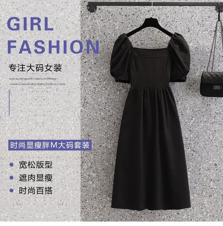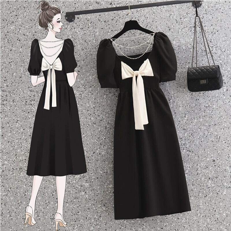 プラスサイズの婦人服 2023 脂肪姉妹夏新フレンチ痩身蝶ネクタイ背中の開いたリトルブラックドレスロングスカートドレス リボン 大きめサイズ サマー 夏物 8884157093174178