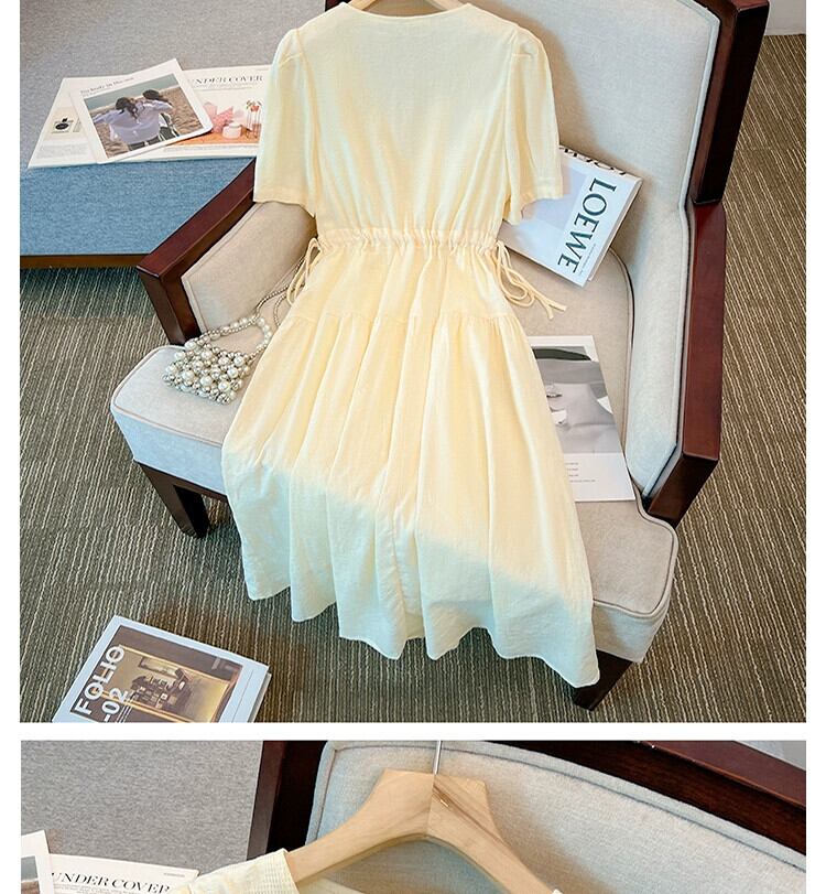 プラスサイズの婦人服 2023 夏の新しい太った妹の年齢を軽減し、薄い V ネックのドレス気質ファッション肉を覆うロングスカート 大きめサイズ サマー 夏物 Vネック 8884156403448614