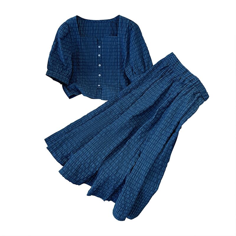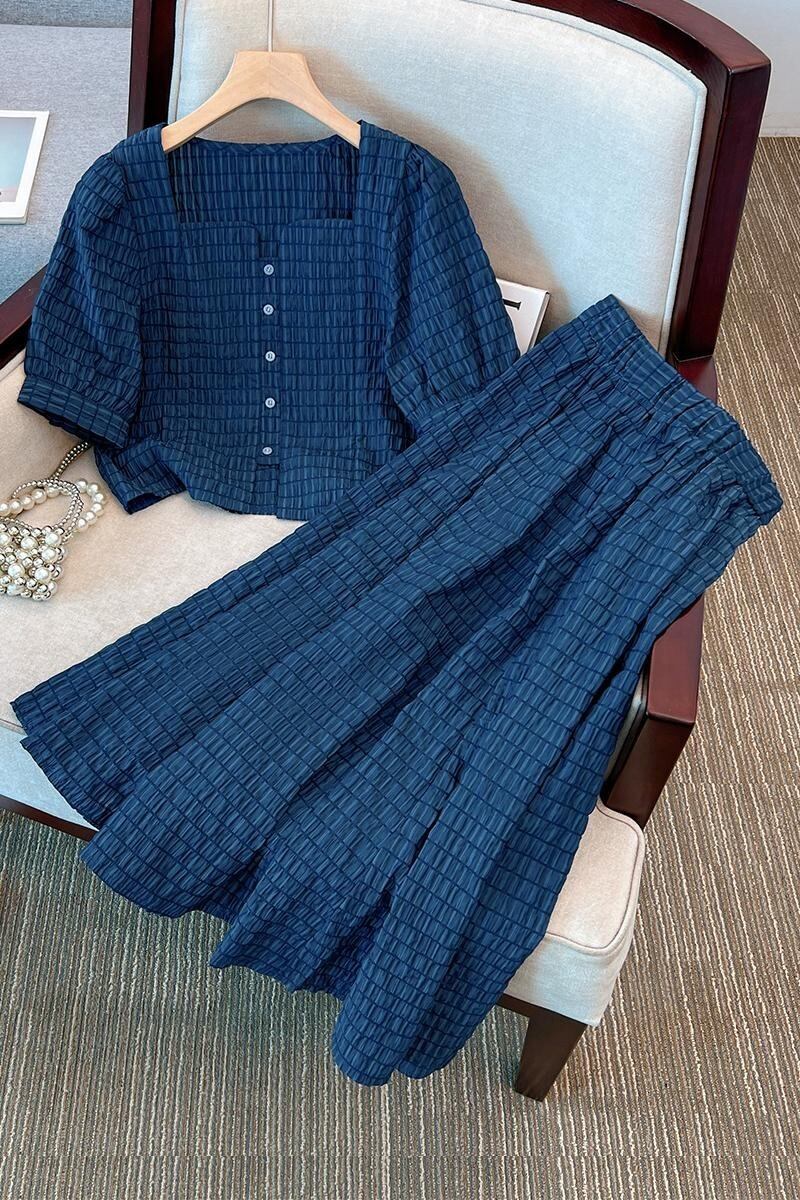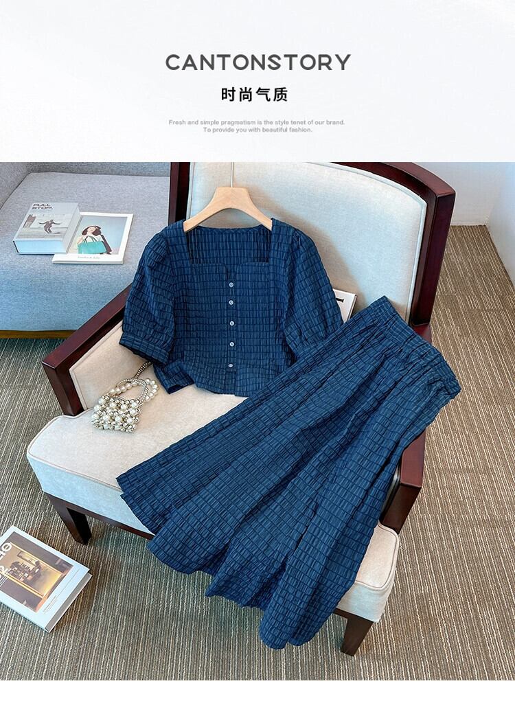 プラスサイズの女性の夏服太った妹フランスのハイエンドのファッションジャケットデニムスカートツーピーススーツは細く見えます 大きめサイズ サマー 夏物 8884163755897341