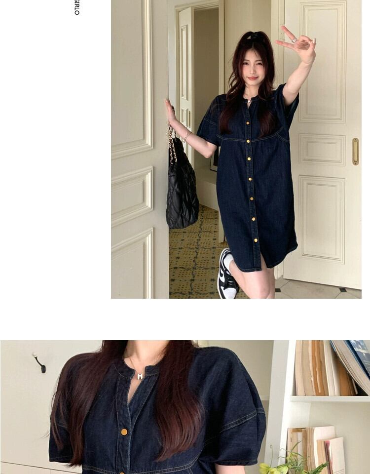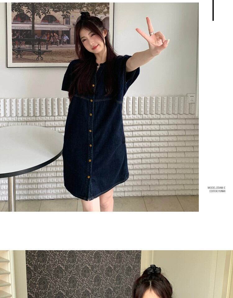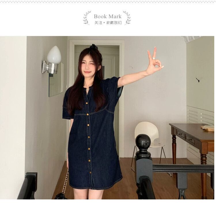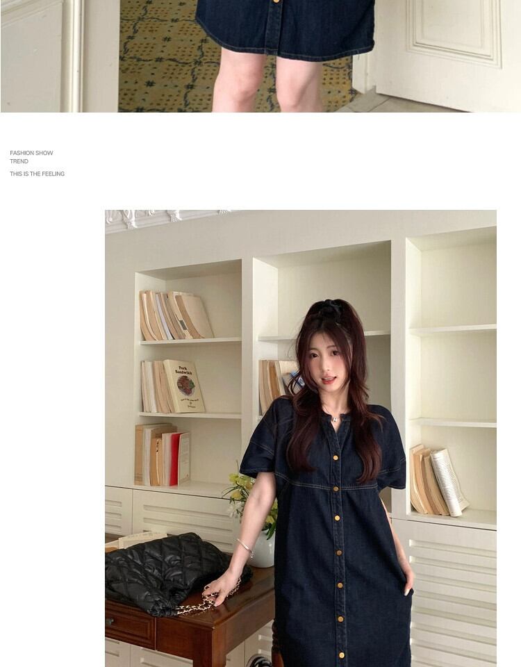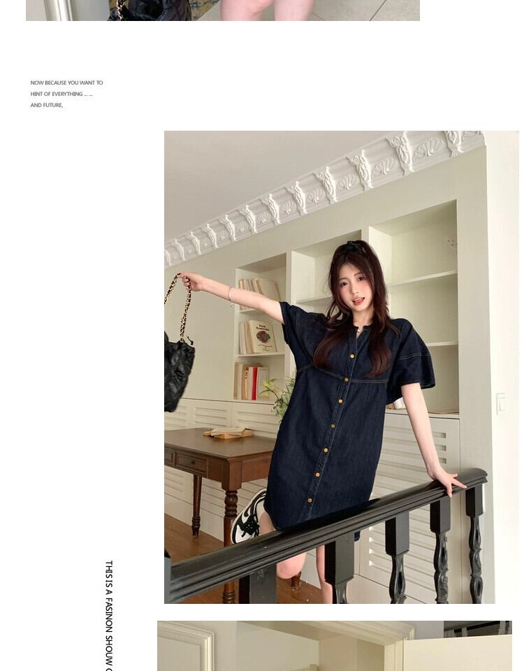 プラスサイズの婦人服 2023 夏の新しいファットシスターフレンチレトロシャツスカート気質ミッドレングスデニムドレス 大きめサイズ サマー 夏物 8884159140838238