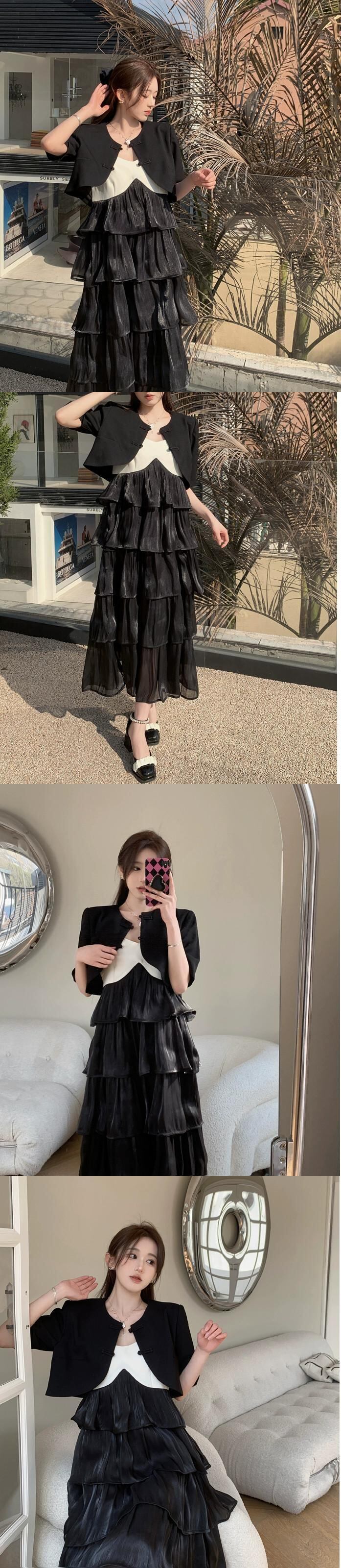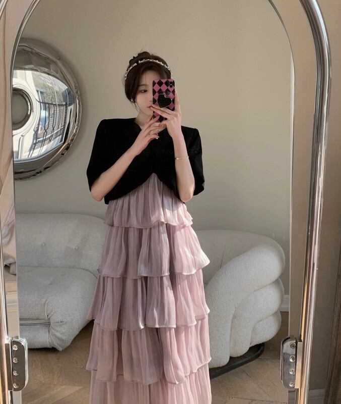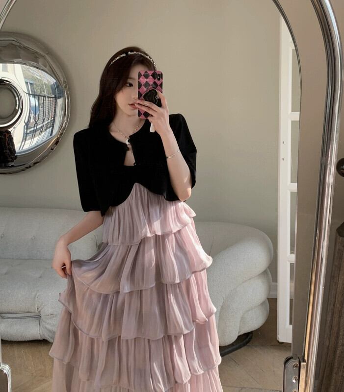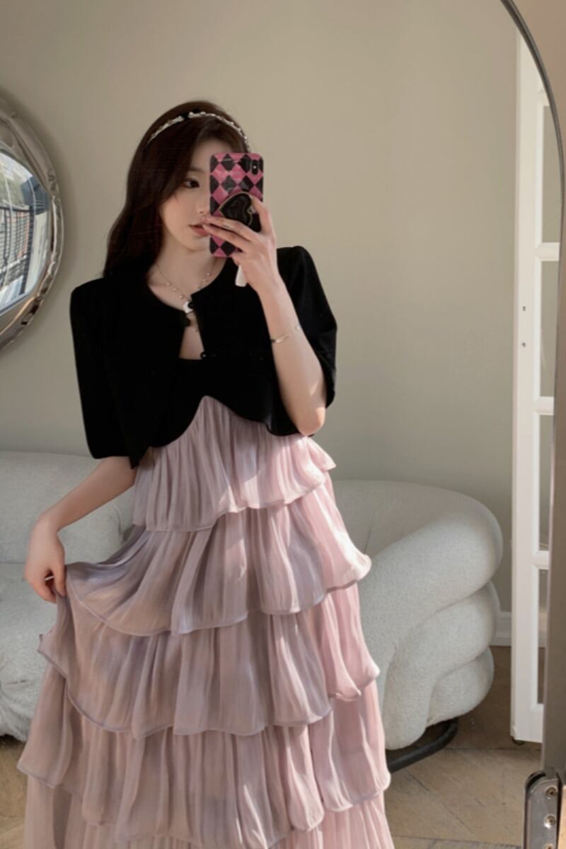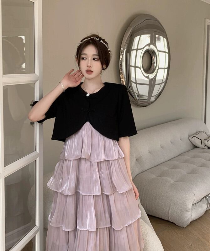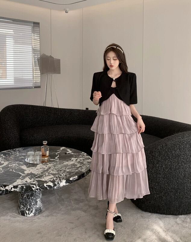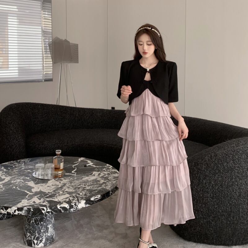 色:シングルスモークグレーパープルケーキドレス,シングルプレミアムブラックケーキドレス,シングル半袖ブレザー