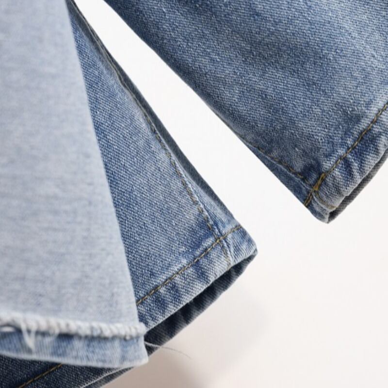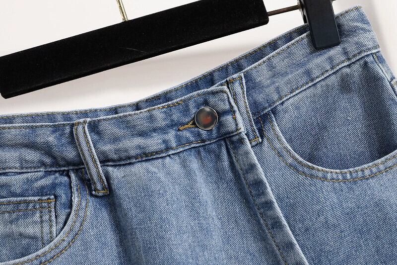 プラスサイズの婦人服 2023 夏服ファットシスターハイウエストデザインセンス偽ツーピースワイドレッグショーツ年齢を減らす気質ジーンズ 大きめサイズ サマー 夏物 ブルマー 8884150700107055