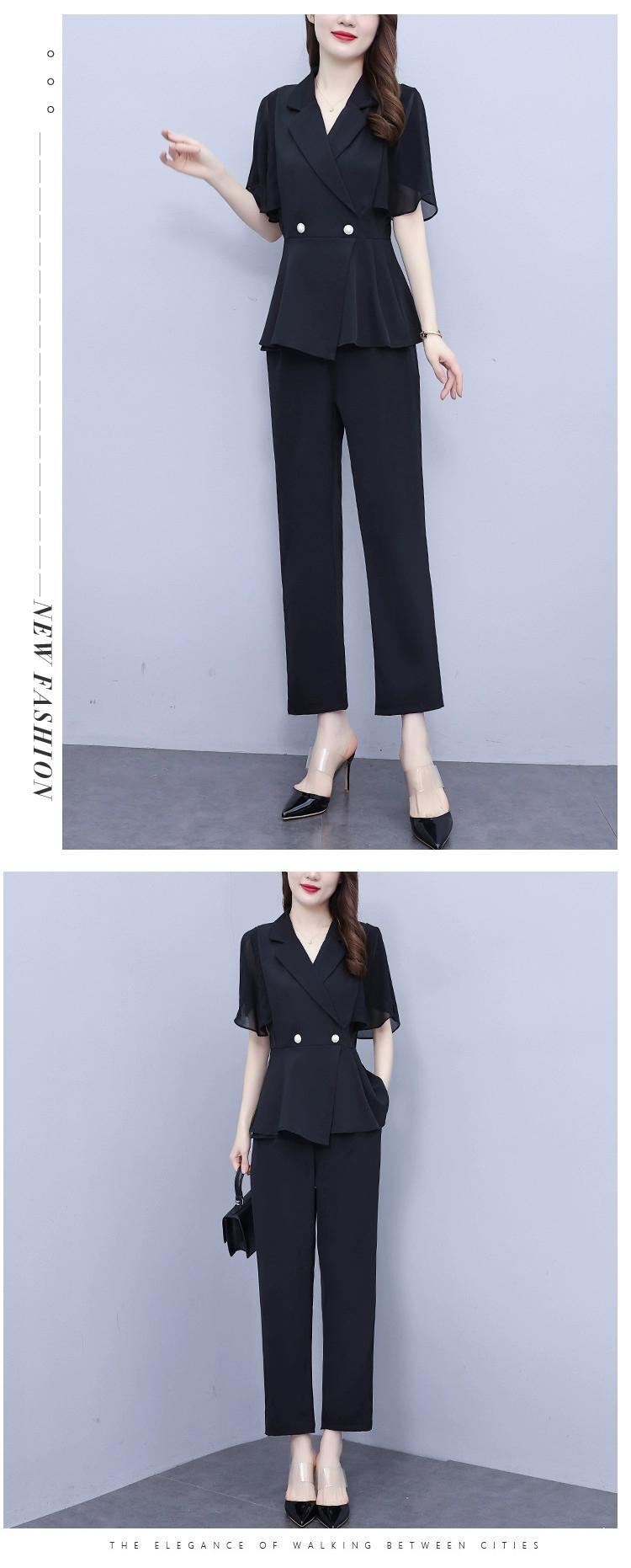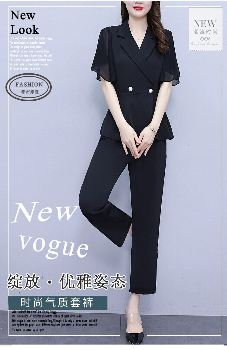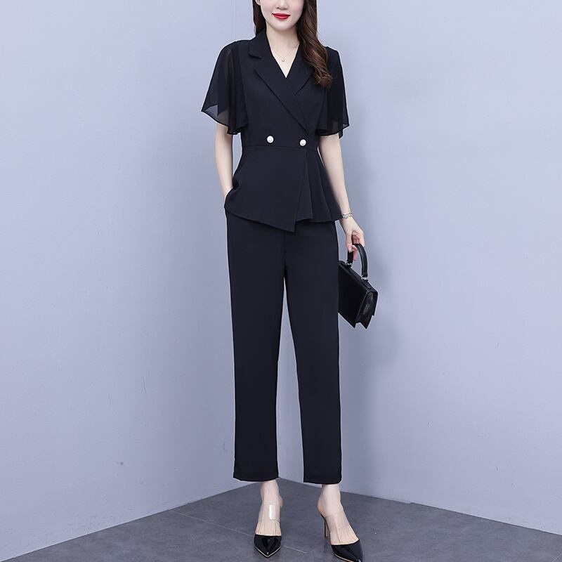 プラスサイズの婦人服 2023 流行の夏の新しい脂肪姉妹カバーお腹と痩せたファッションスーツシフォンシャツカジュアルパンツ 2 点セット 大きめサイズ サマー 夏物 888415788314102
