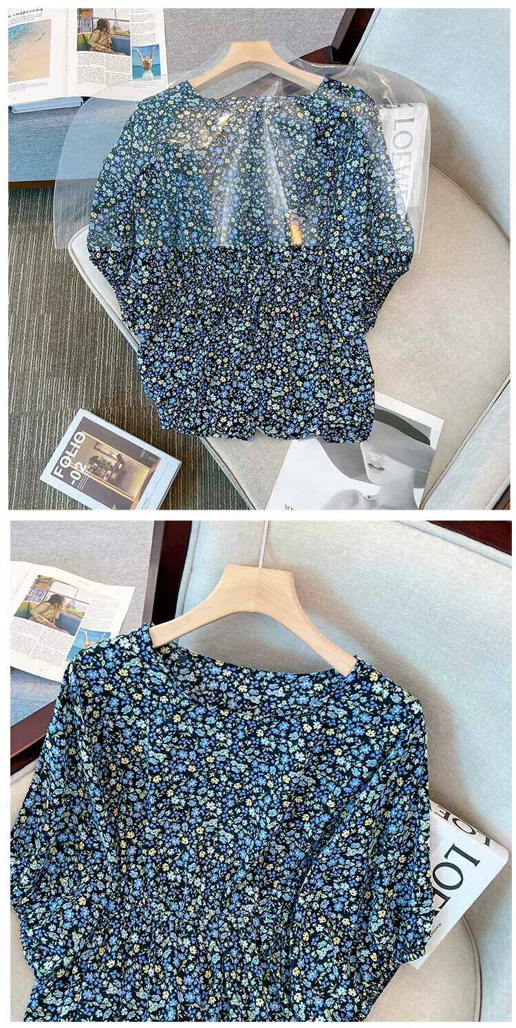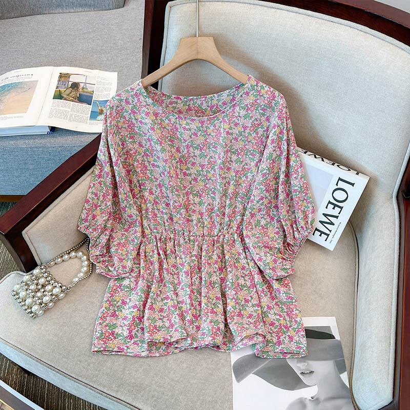 プラスサイズの婦人服 2023 夏服太った姉妹、eign スタイル、薄い花柄シフォン シャツ、気質、年齢を減らす、カジュアルなお腹カバー シャツ 大きめサイズ サマー 夏物 8884113291832051