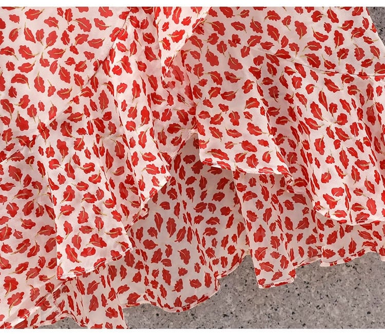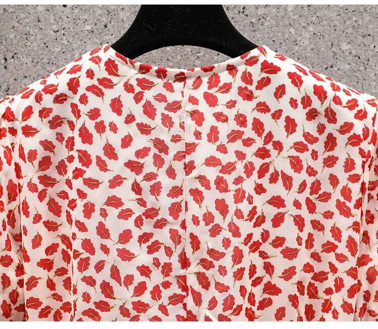 プラスサイズの婦人服 2023 夏服ファットシスターフレンチスタイルパフスリーブ気質花柄スカート年齢軽減痩身ドレス 大きめサイズ サマー 夏物 8884174902783554