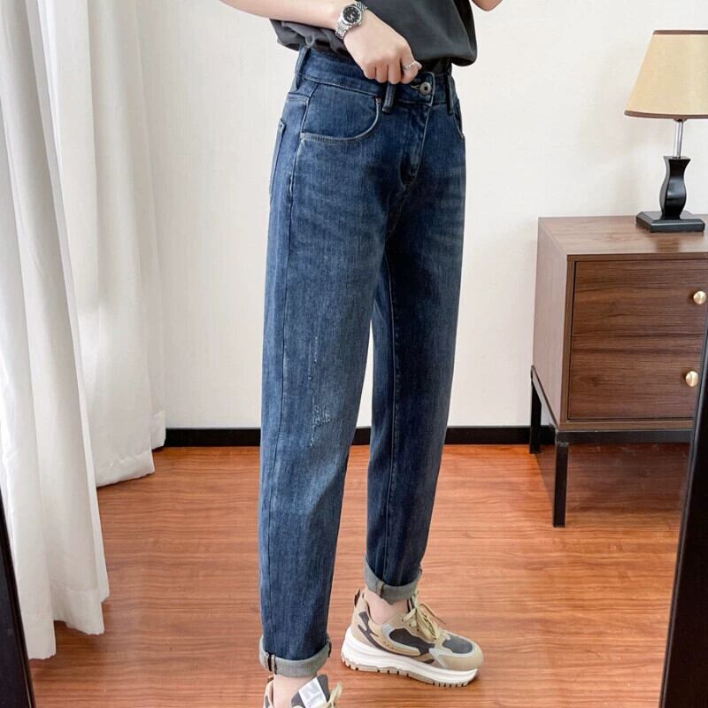 プラスサイズの婦人服 2023 脂肪姉妹夏の新しいクロップドパンツジーンズに見える薄いレトロ弾性ストレートチューブパンツ エラスティック 伸縮 大きめサイズ サマー 夏物 8884166041579150