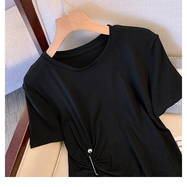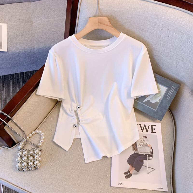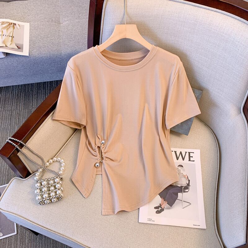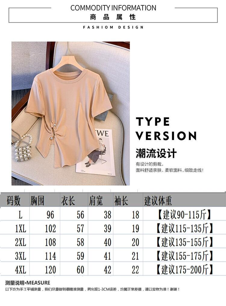 プラスサイズの婦人服 2023 ファットシスターサマードレスデザインセンス不規則なスリット半袖 Tシャツスリムショルダートップ 大きめサイズ 夏物 8884116954407665