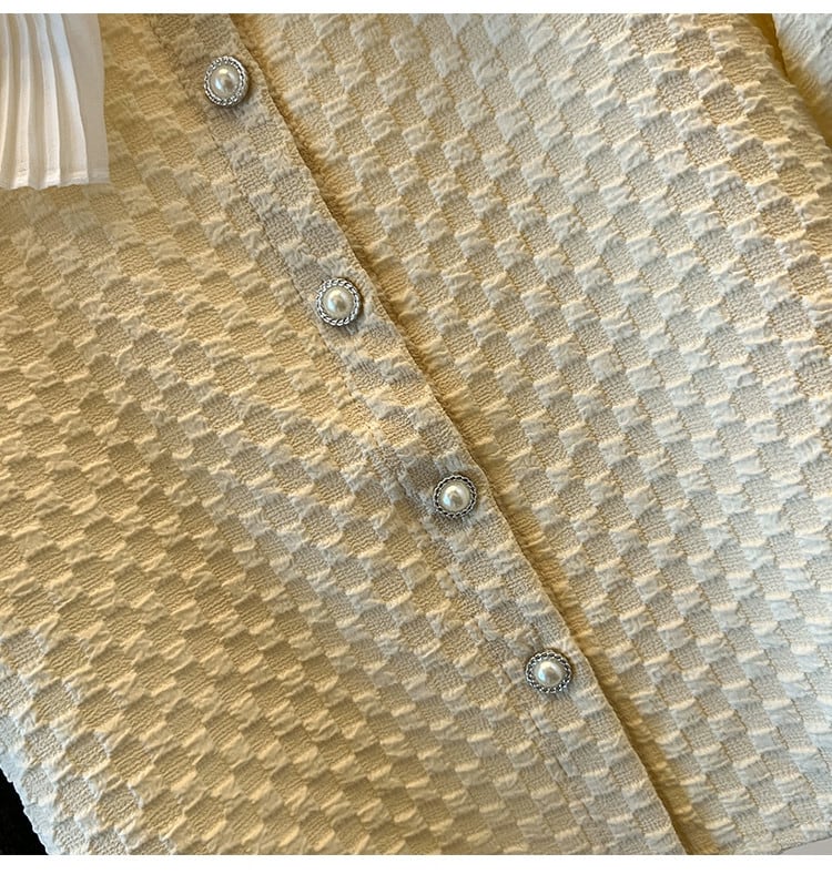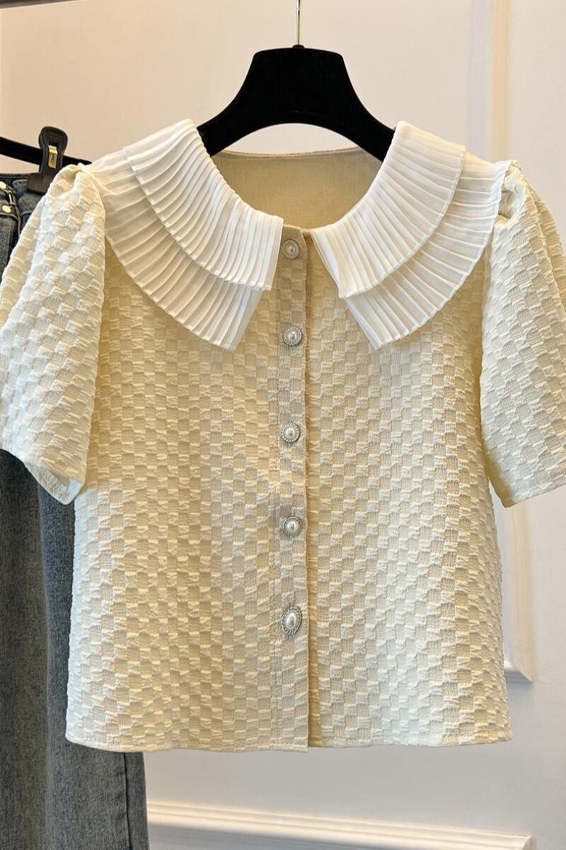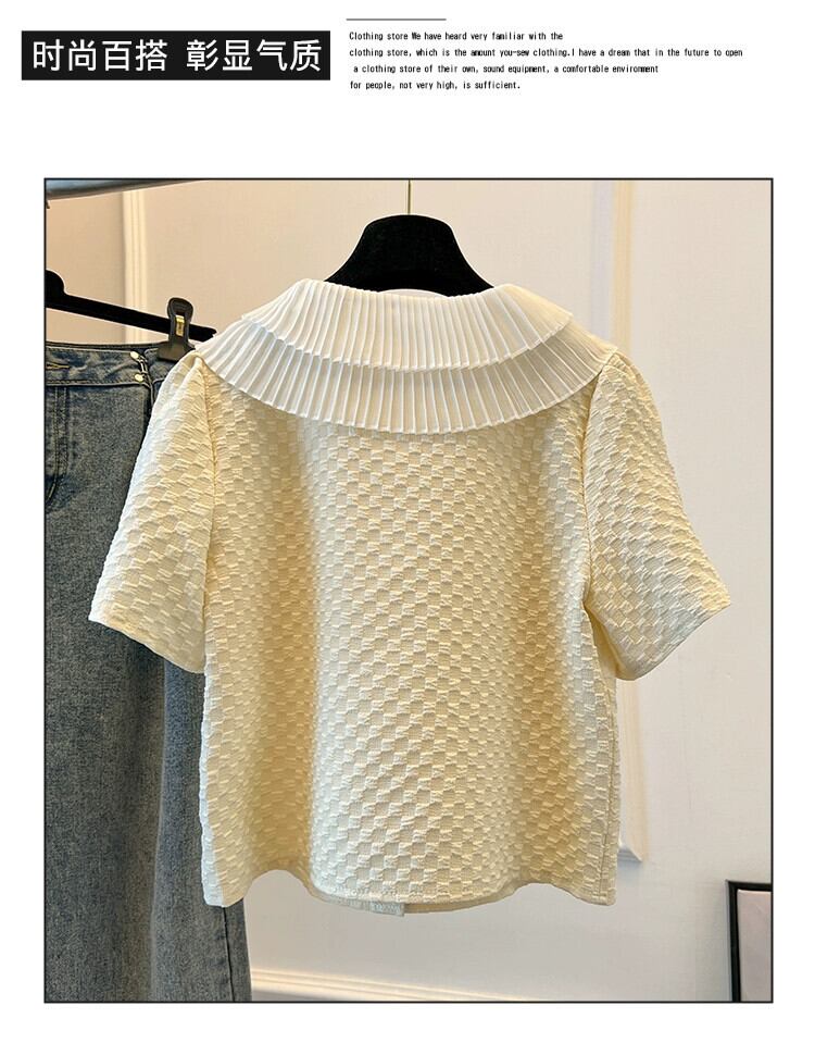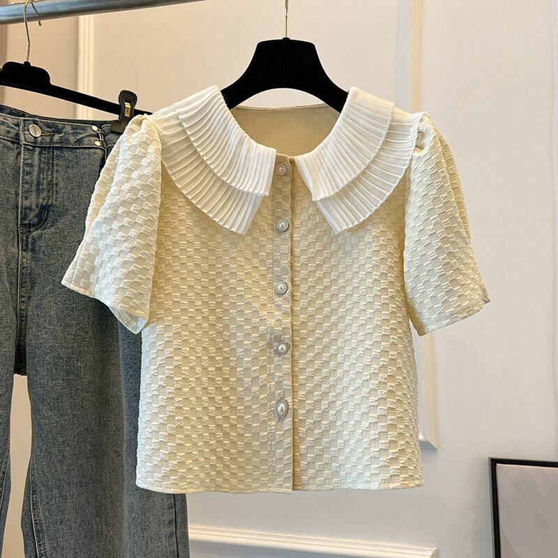 プラスサイズの婦人服 2023 ファットシスター夏甘い甘いダブル人形襟シャツデザインテクスチャ eign スタイルトップ 大きめサイズ 大人ガーリー スウィート キュート カジュアル サマー 夏物 8884125188930109