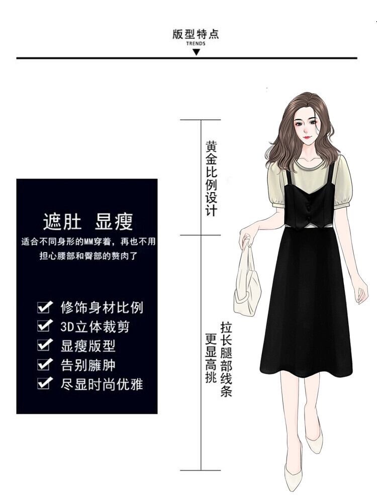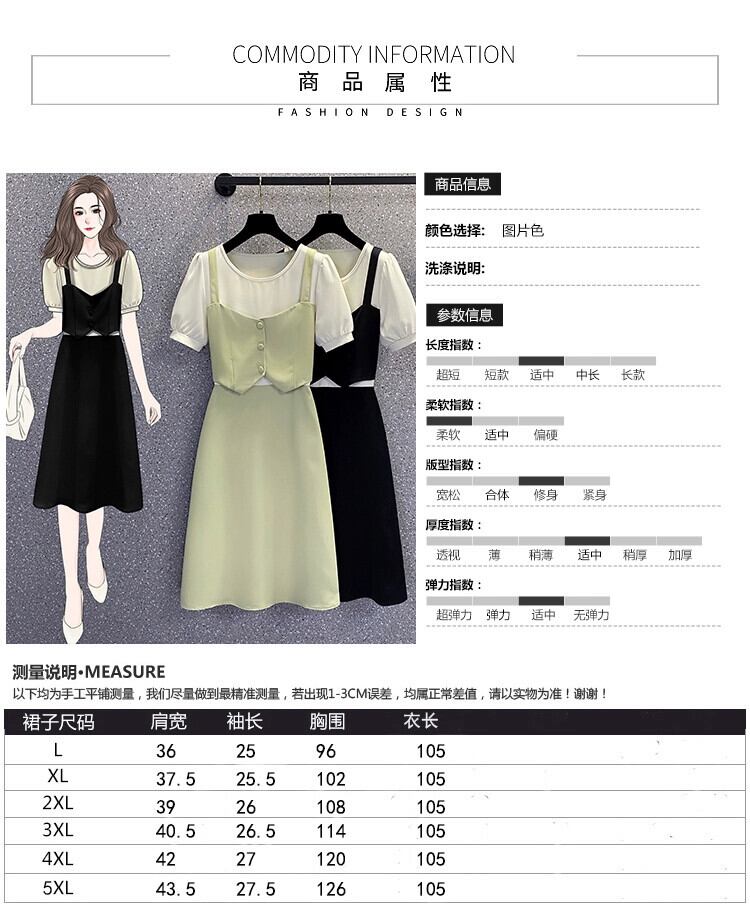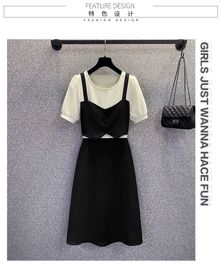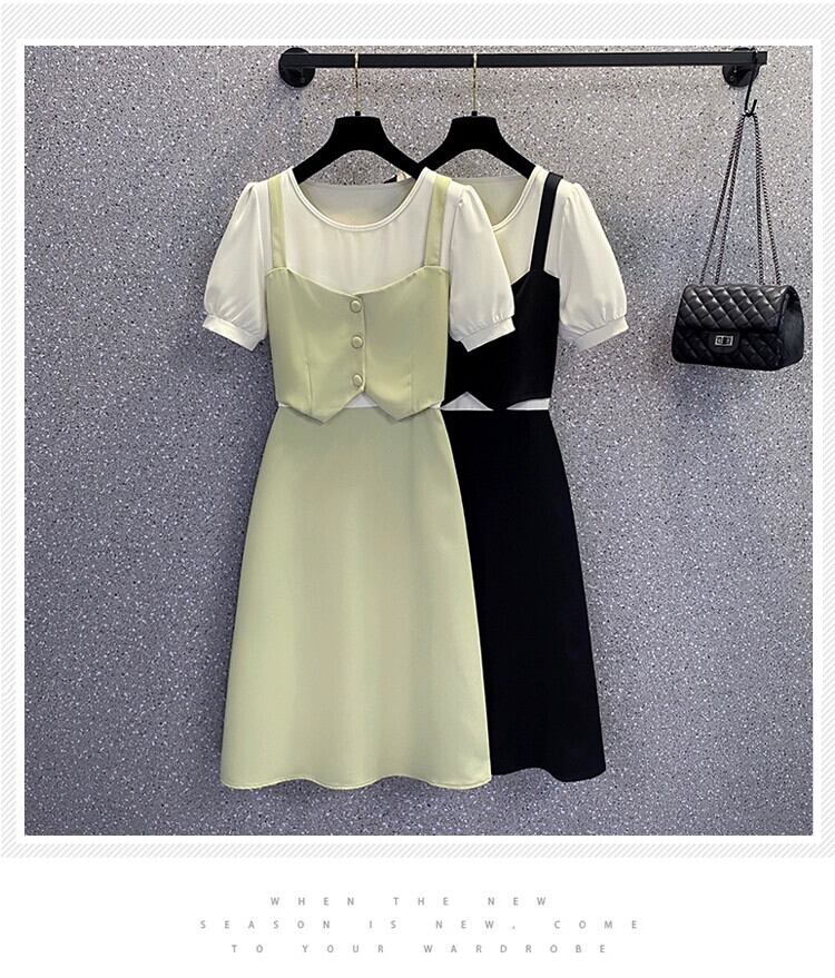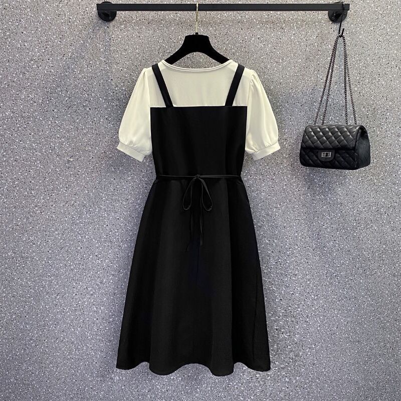 プラスサイズの婦人服 2023 トレンディな夏の新しい太った姉妹は痩せて年齢を減らすように見えます西洋風のフランスの優しい風フェイクツーピースドレス 大きめサイズ サマー 夏物 888414593883733
