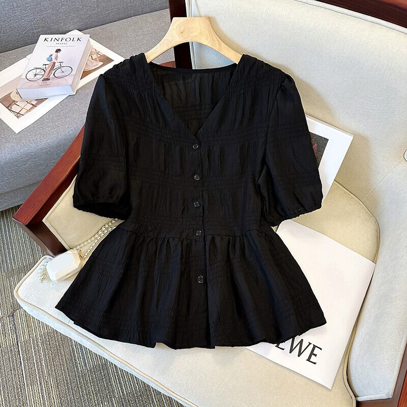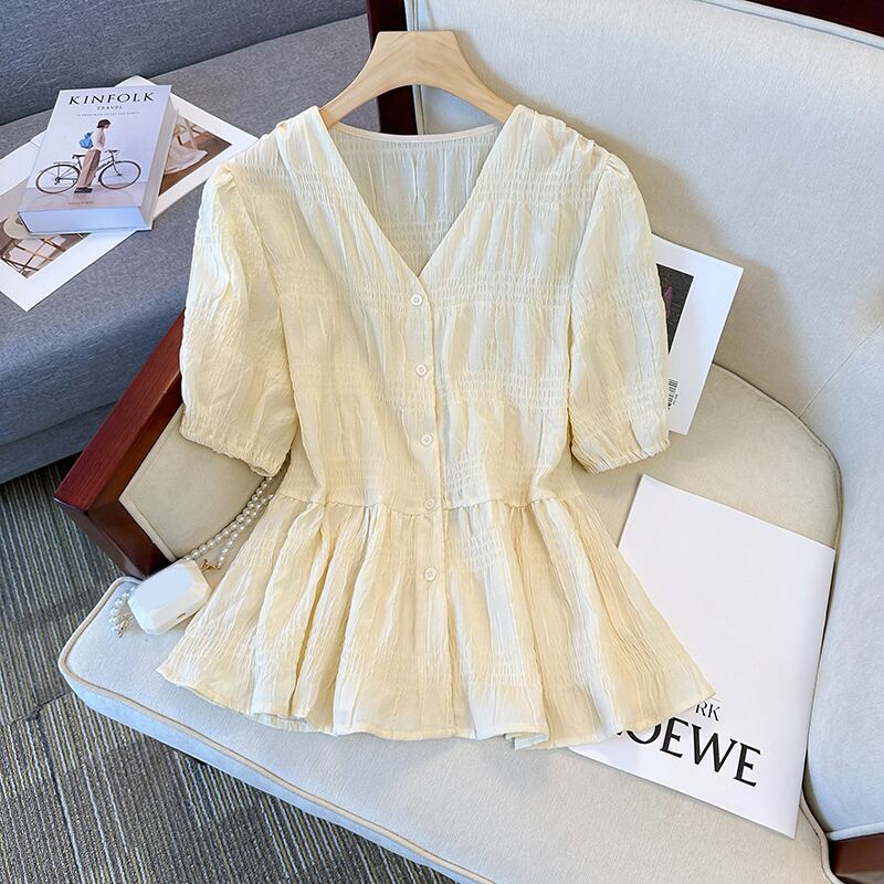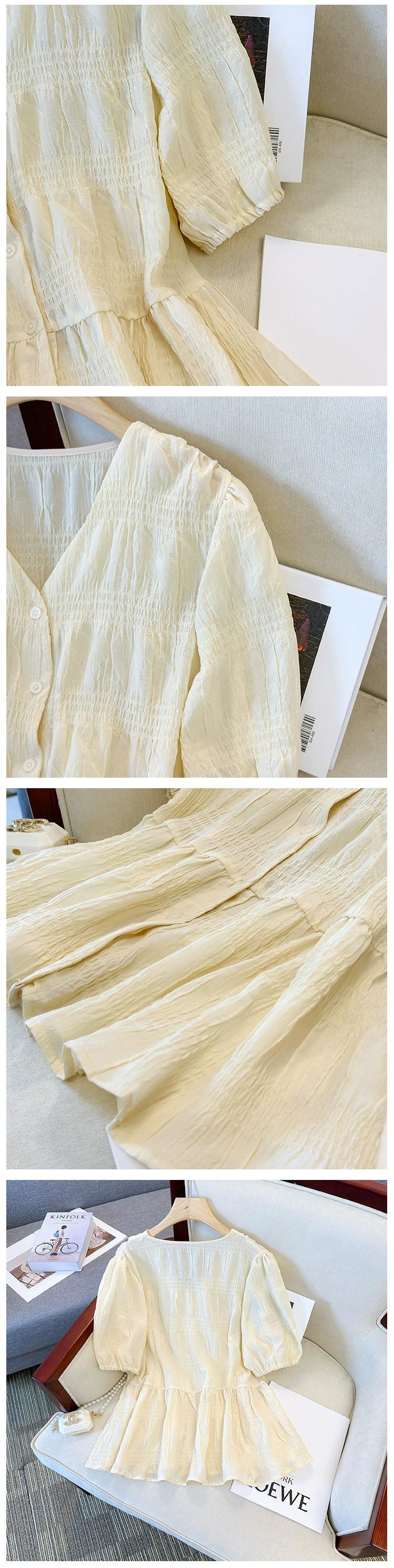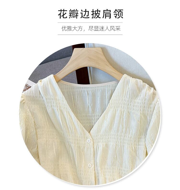プラスサイズの婦人服 2023 ファットシスター サマードレス プリーツ 年齢を軽減するお腹カバー シャツ シックな V ネック カーディガン トップ 大きめサイズ 夏物 Vネック 8884181238375115