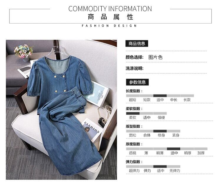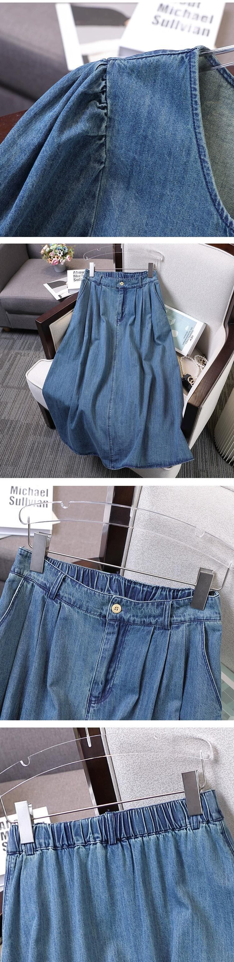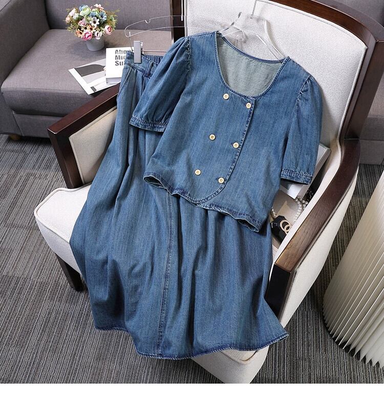 プラスサイズの婦人服 2023 ファットシスター夏の新しいデニムスーツスリム A ラインスカート気質オールマッチシャツ 2 点セット 大きめサイズ サマー 夏物 Aライン 8884143089809186