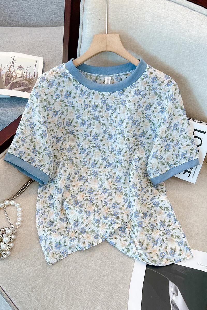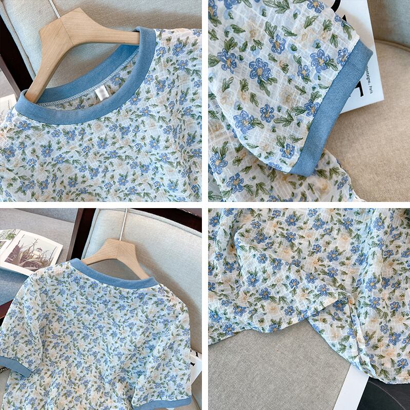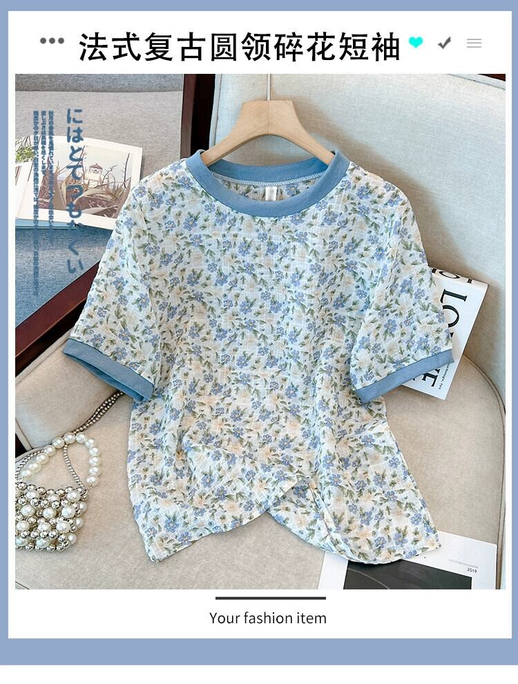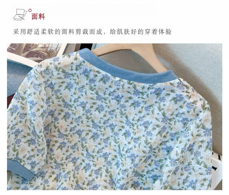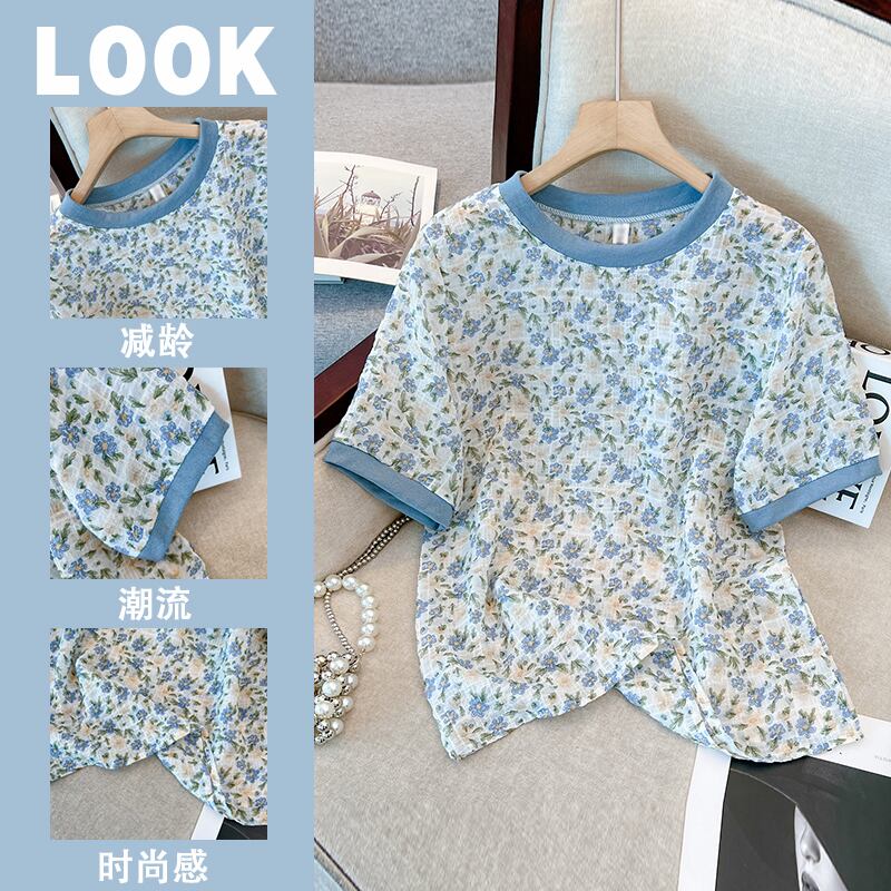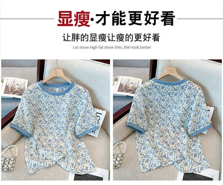 プラスサイズの婦人服 2023 ファットシスター夏のファッション花柄カラーマッチングルーズ腹カバー薄い半袖シャツ Tシャツトップ 大きめサイズ サマー 夏物 8884163058629904