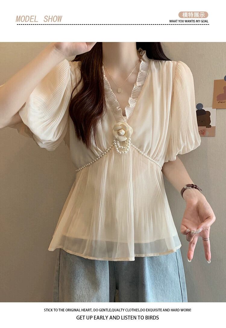 プラスサイズの婦人服 2023 夏服ファットシスターフレンチデザインセンスシフォンシャツ気質少数派カバー腹オールマッチトップス 大きめサイズ サマー 夏物 8884170354465185