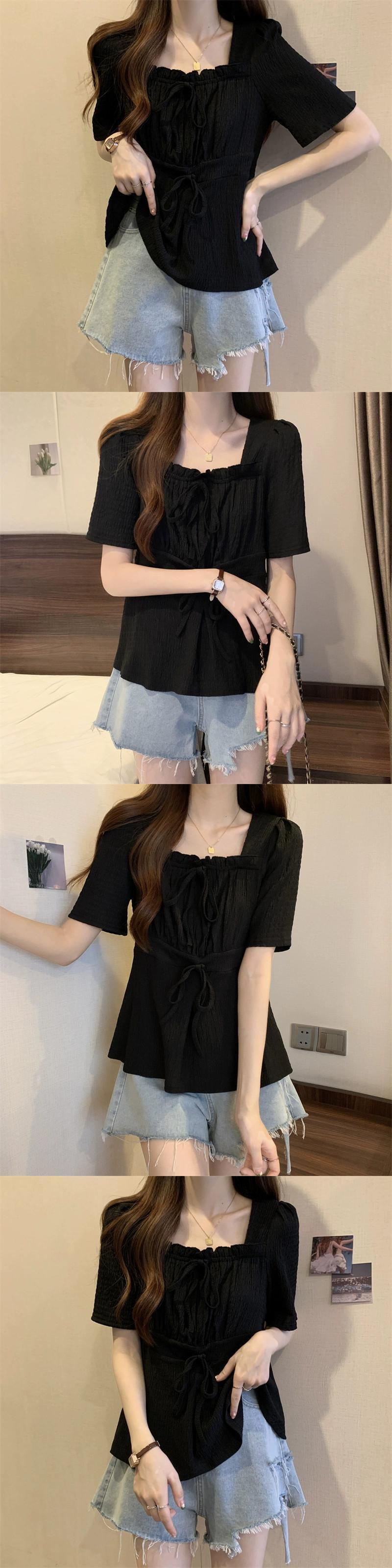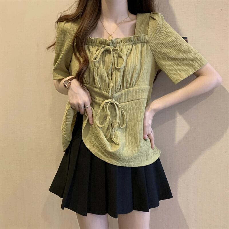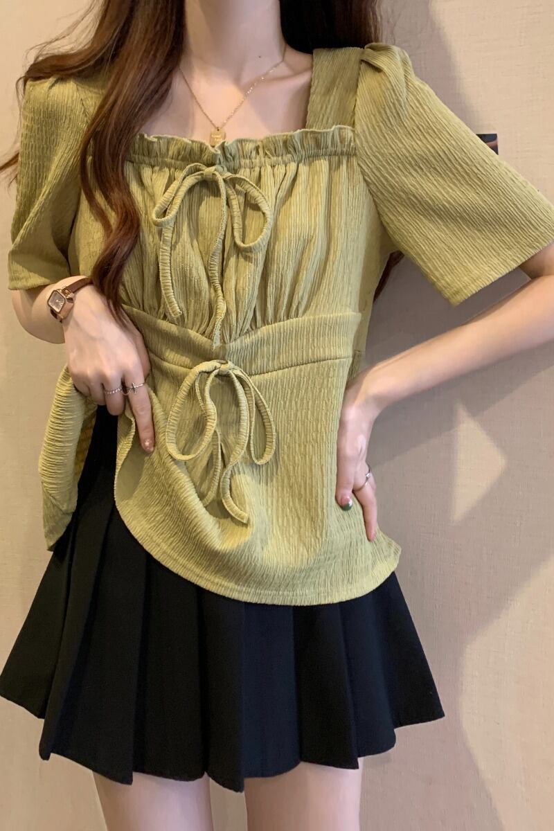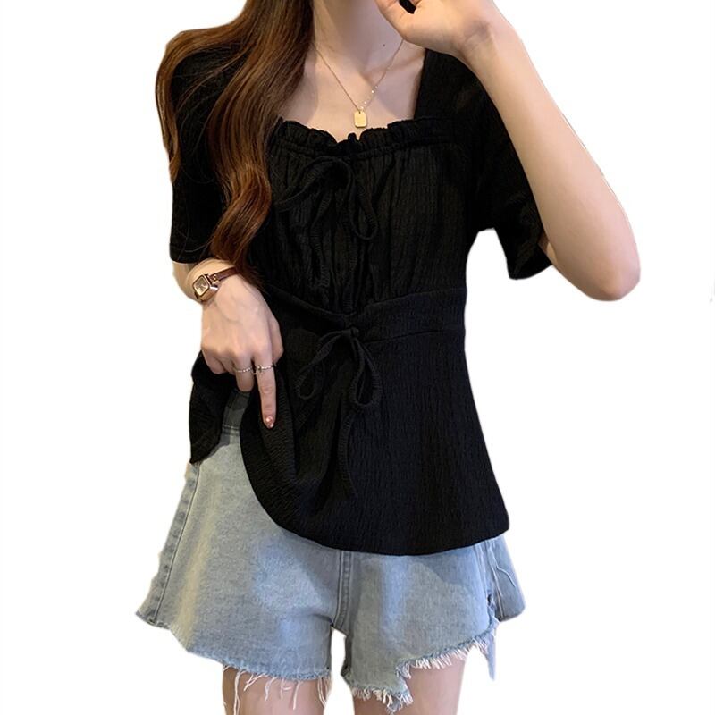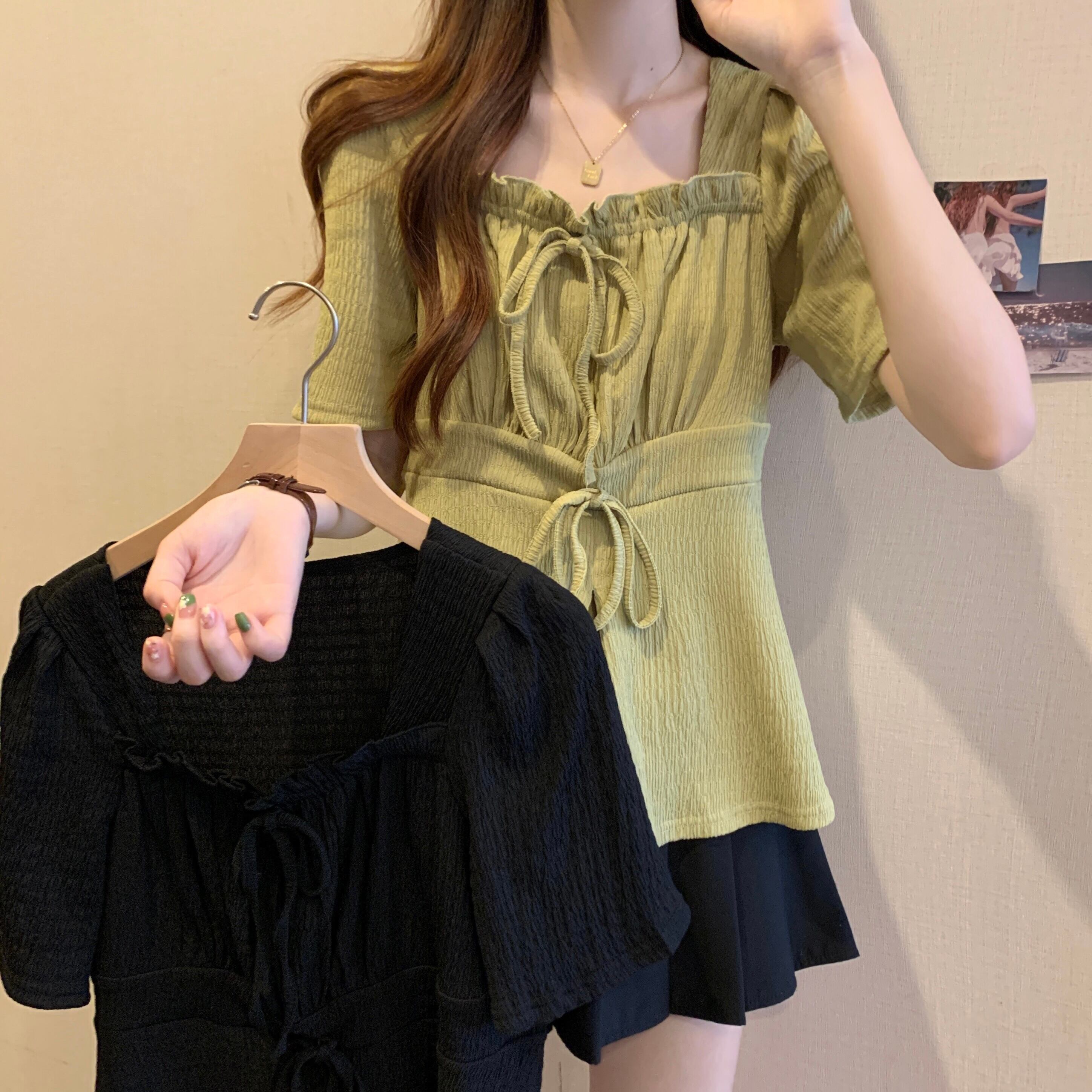 プラスサイズの女性の夏服ファットシスターファッション年齢を軽減する巾着シフォンシャツデザイン感腹カバートップフレンチシャツ 大きめサイズ サマー 夏物 8884161072143866