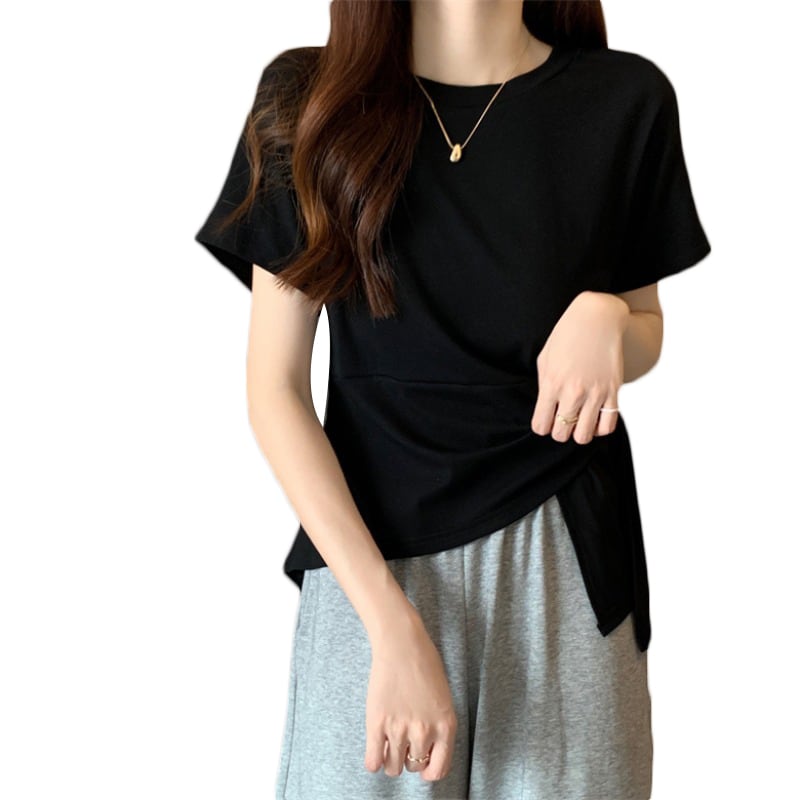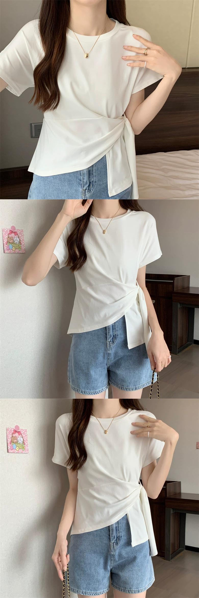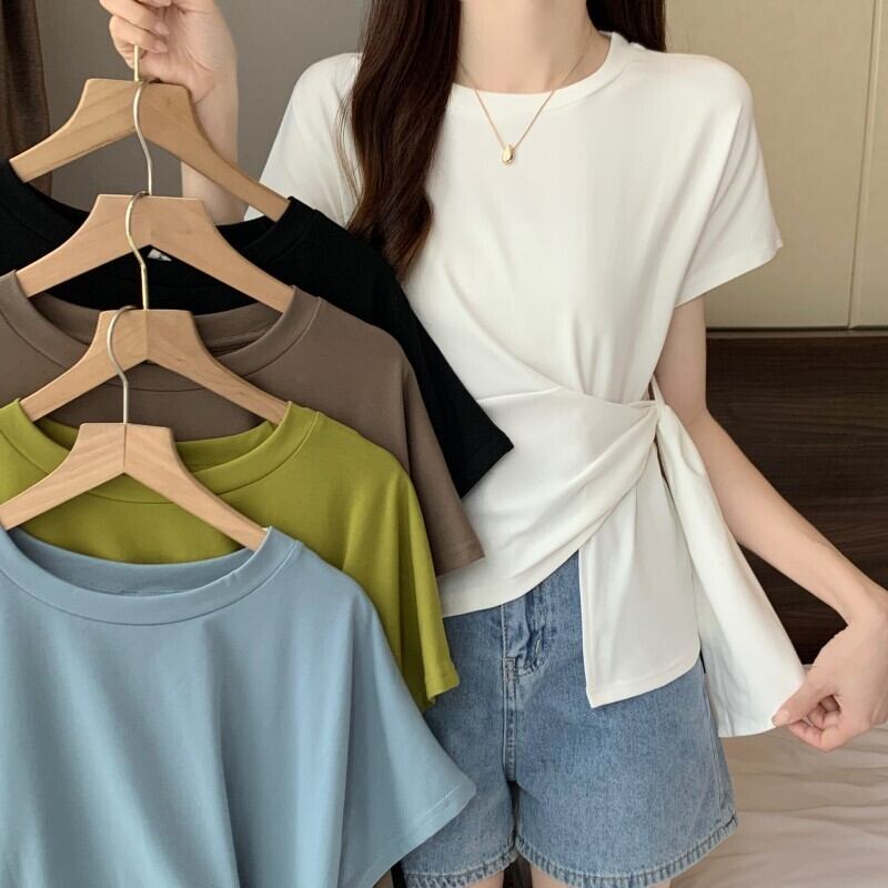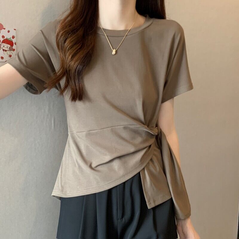 プラスサイズの婦人服 2023 夏服、太い、オールマッチ気質、ストラップトップ、スリムなデザイン、シックなカジュアル T シャツ 大きめサイズ サマー 夏物 Tシャツ 8884192645659079