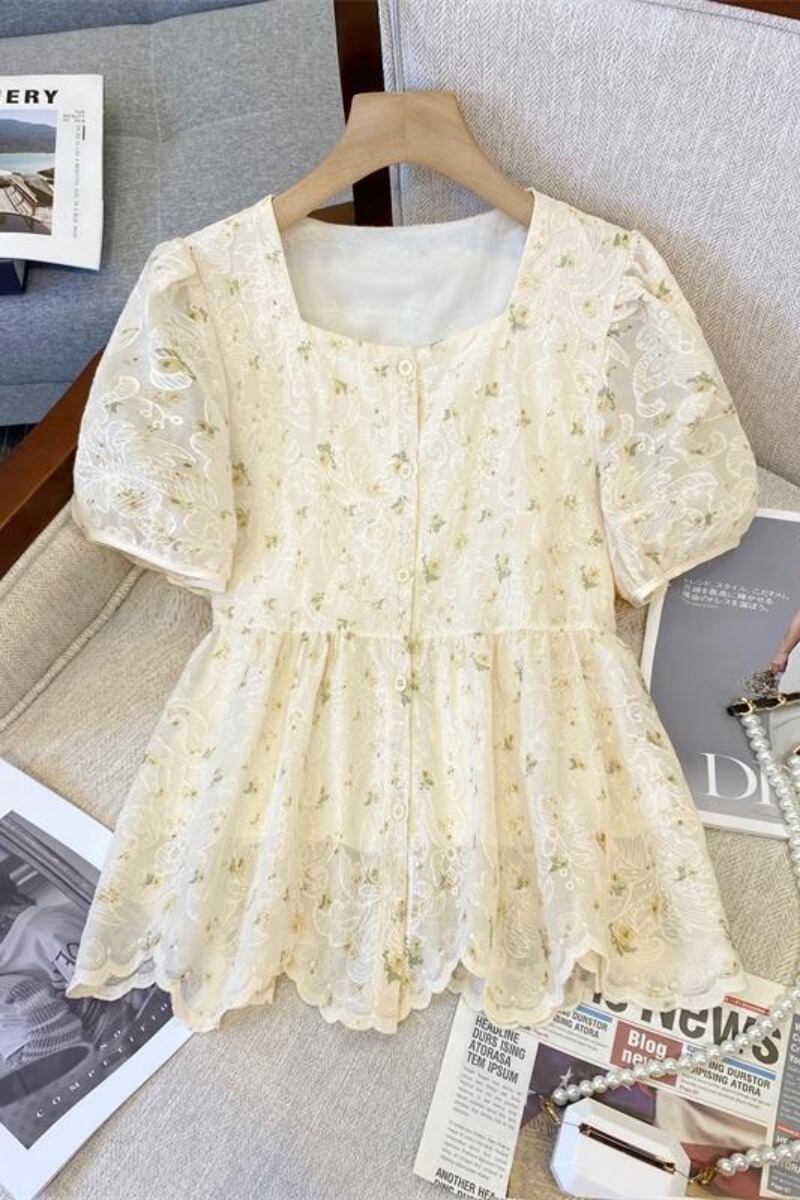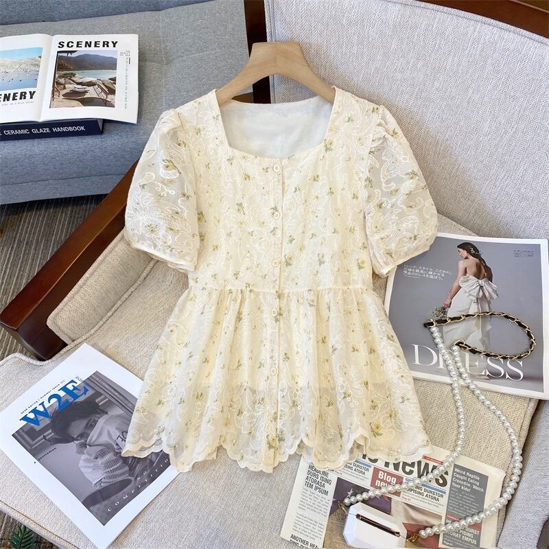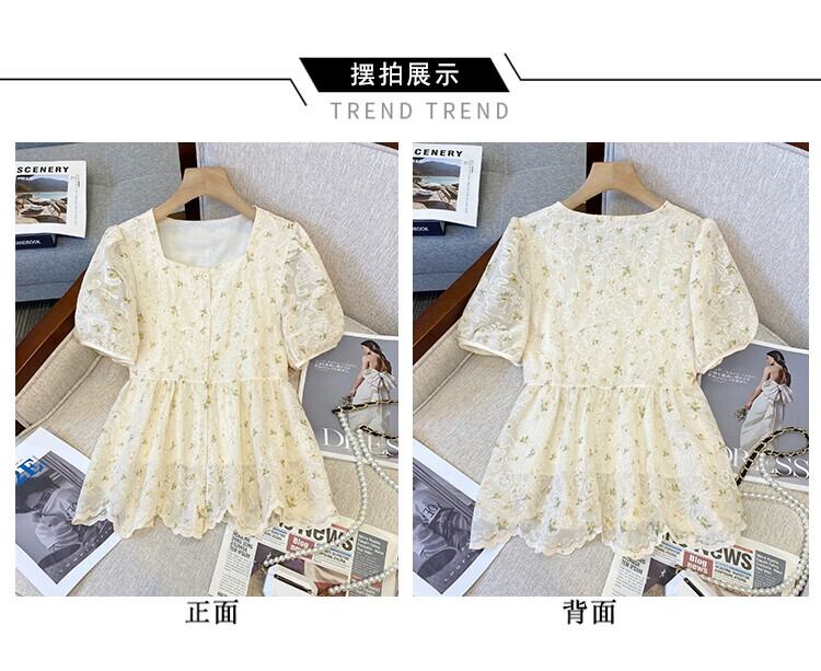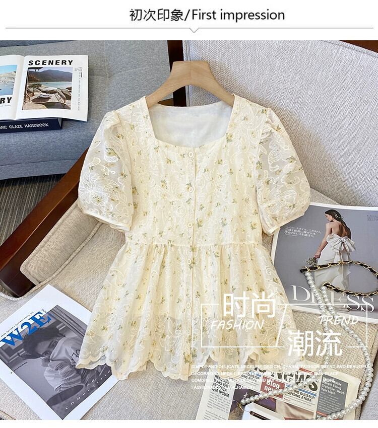 プラスサイズの婦人服 2023 ファットシスター夏デザインセンスジャカード刺繍スクエアカラーシャツ人形シャツ年齢削減トップ 大きめサイズ サマー 夏物 スクウェア 8884169490243950