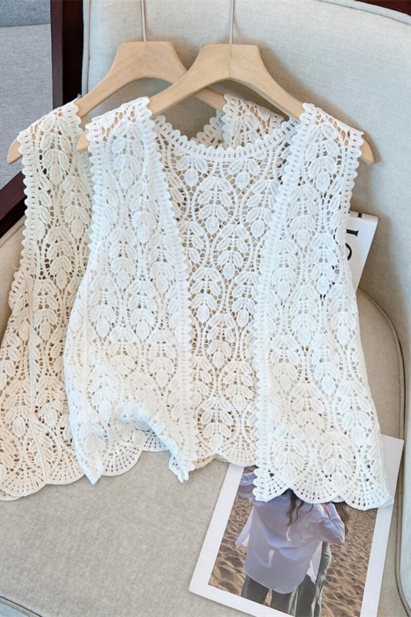 プラスサイズの婦人服 2023 新しい夏服ファットシスターズ新しい緩くて薄い中空カーディガンかぎ針編みベスト 大きめサイズ サマー 夏物 888415313401930