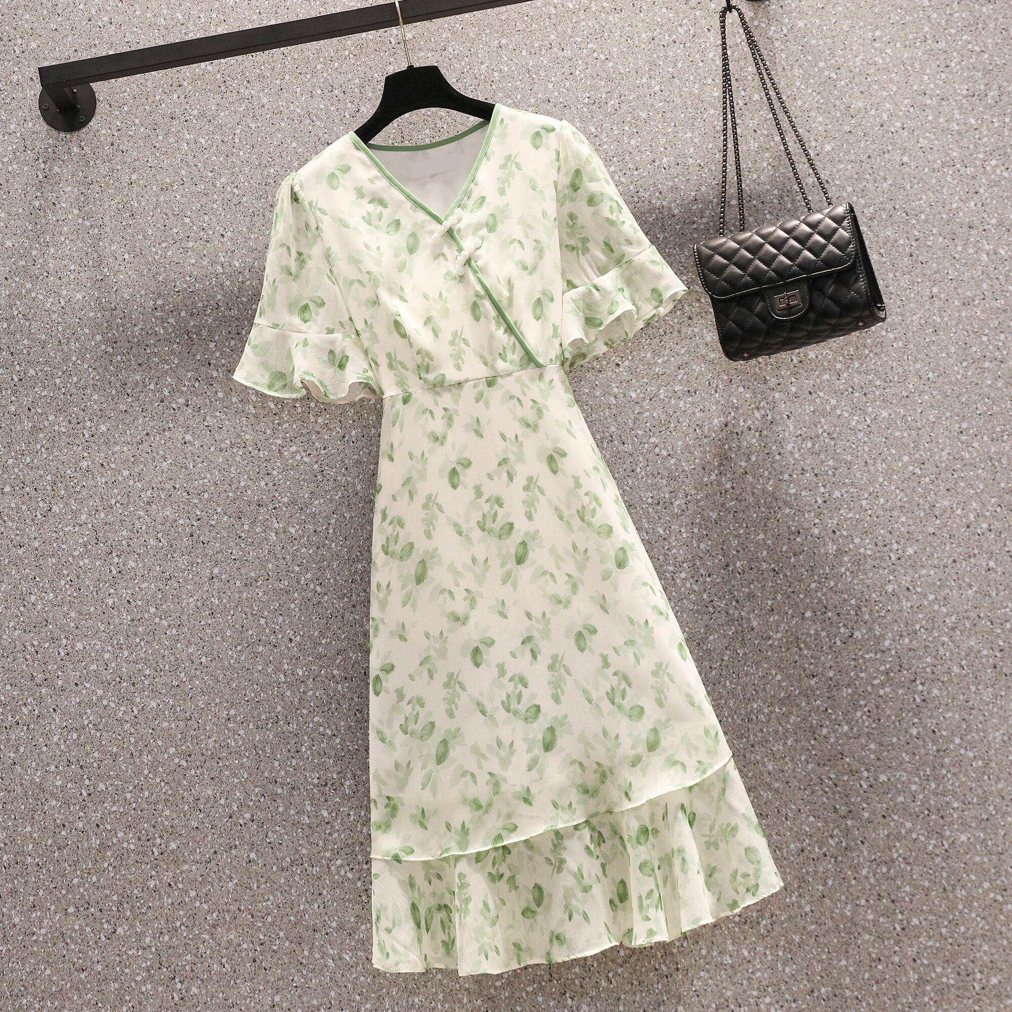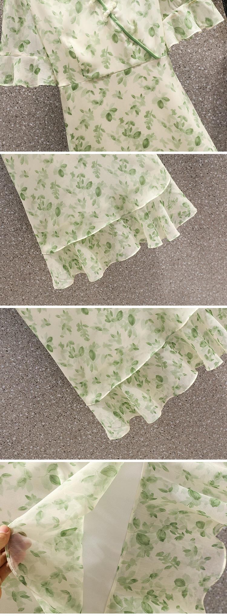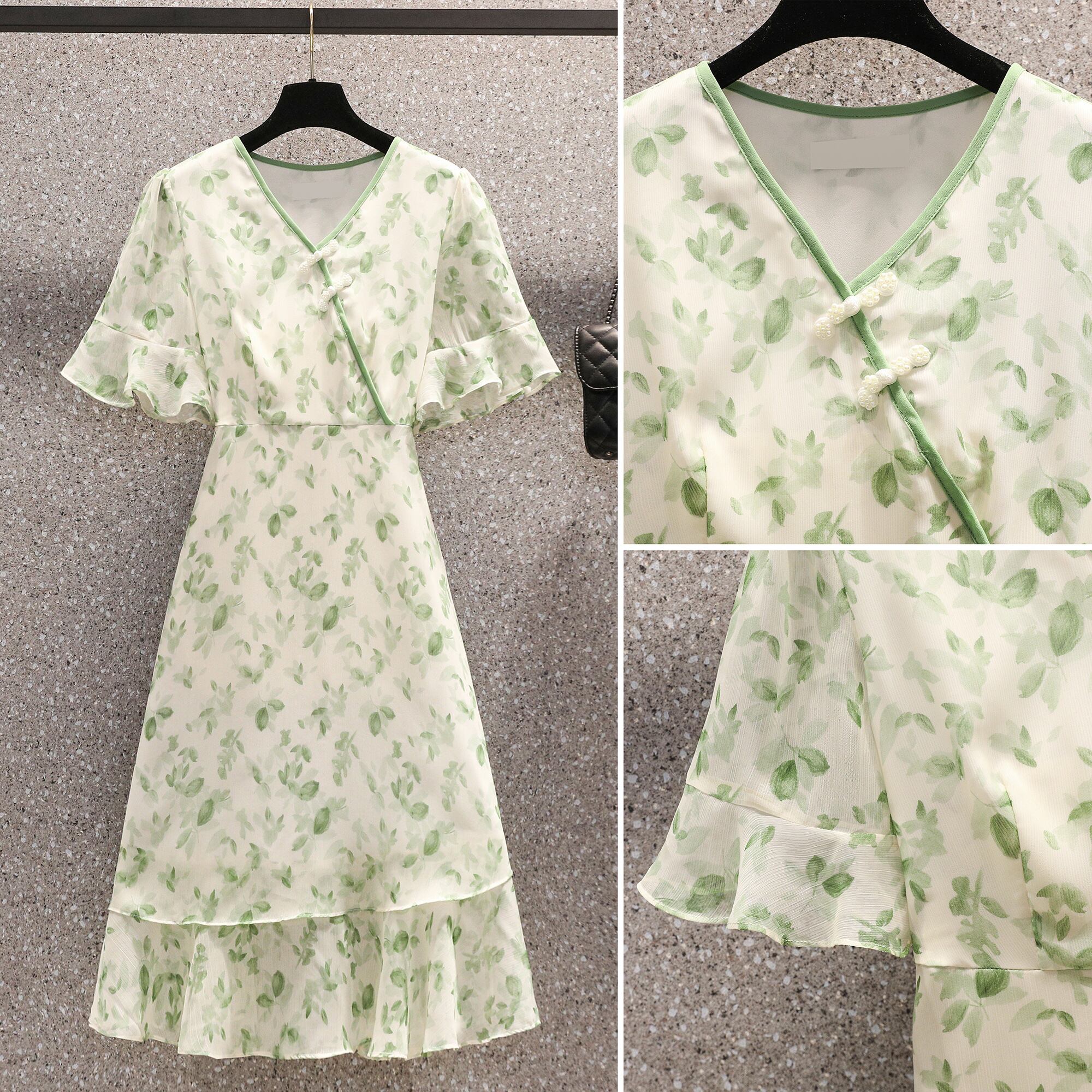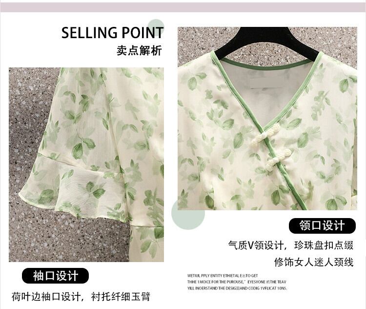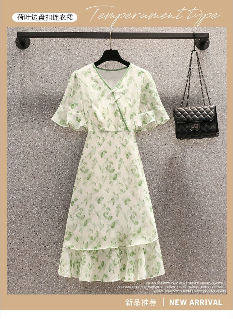 プラスサイズの婦人服 2023 脂肪姉妹夏の新ファッション年齢軽減 V ネックスカートプリントシフォン花柄ドレス 大きめサイズ サマー 夏物 Vネック 8884159347038711