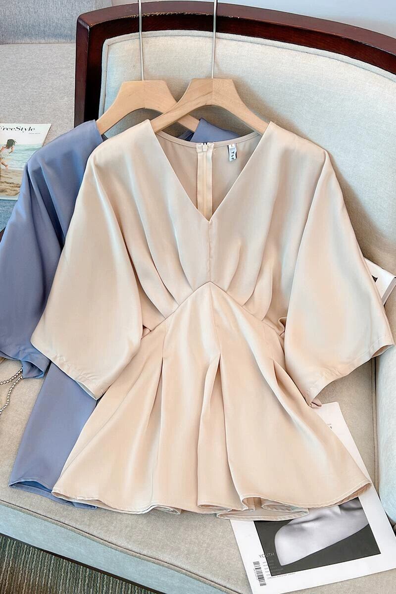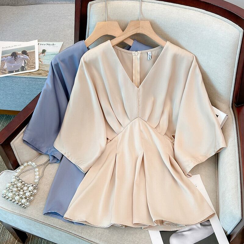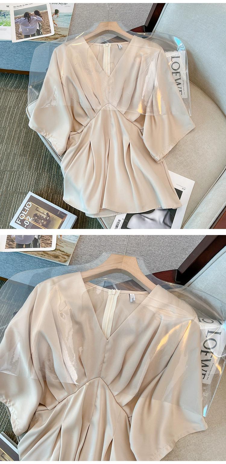 プラスサイズの婦人服 2023 夏服太った妹の気質年齢を軽減する V ネックデザインのトップスはお腹をカバーし、薄く見えるシフォン シャツ 大きめサイズ サマー 夏物 Vネック 8884120152926389