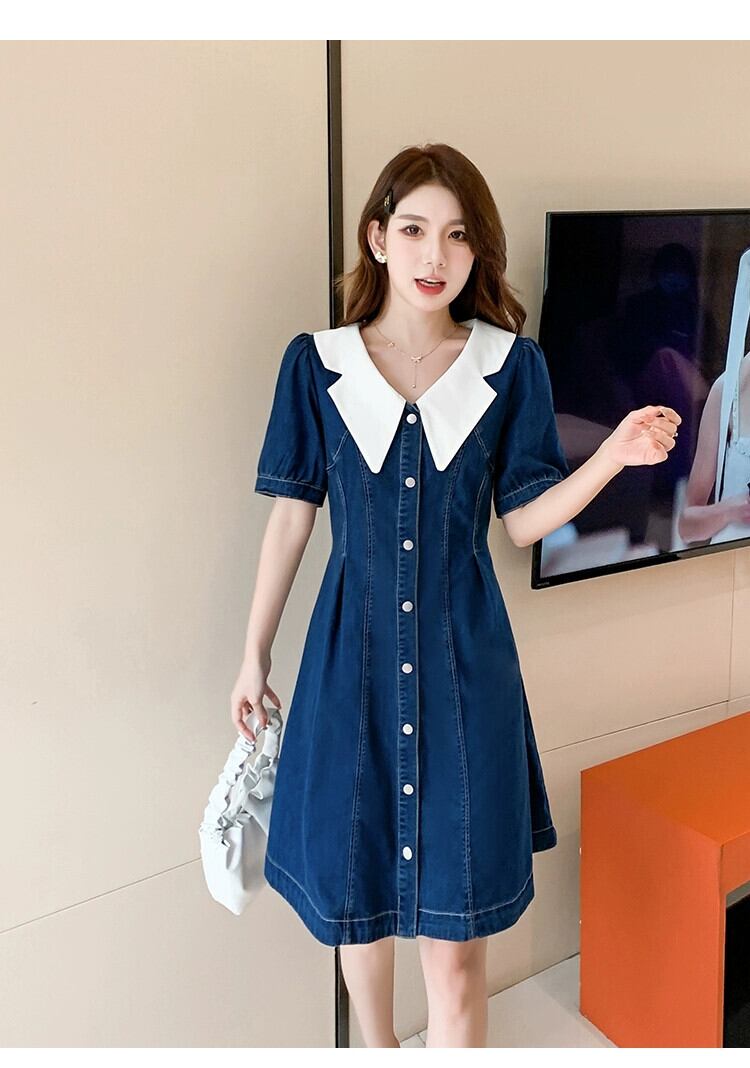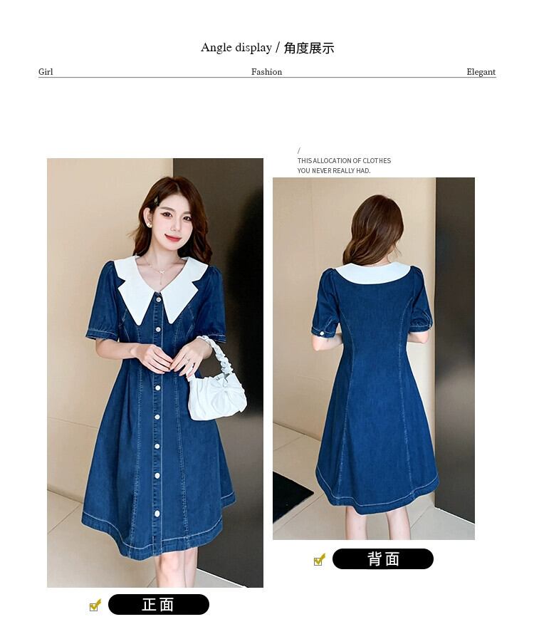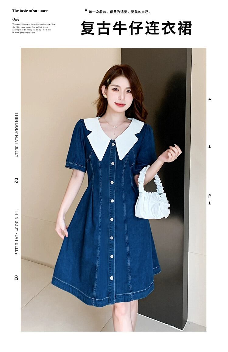 プラスサイズの女性の 2023 夏ファットシスター偽二枚フレンチレトロデニムスカート取り外し可能な襟シックなドレス 大きめサイズ サマー 夏物 8884170965517601