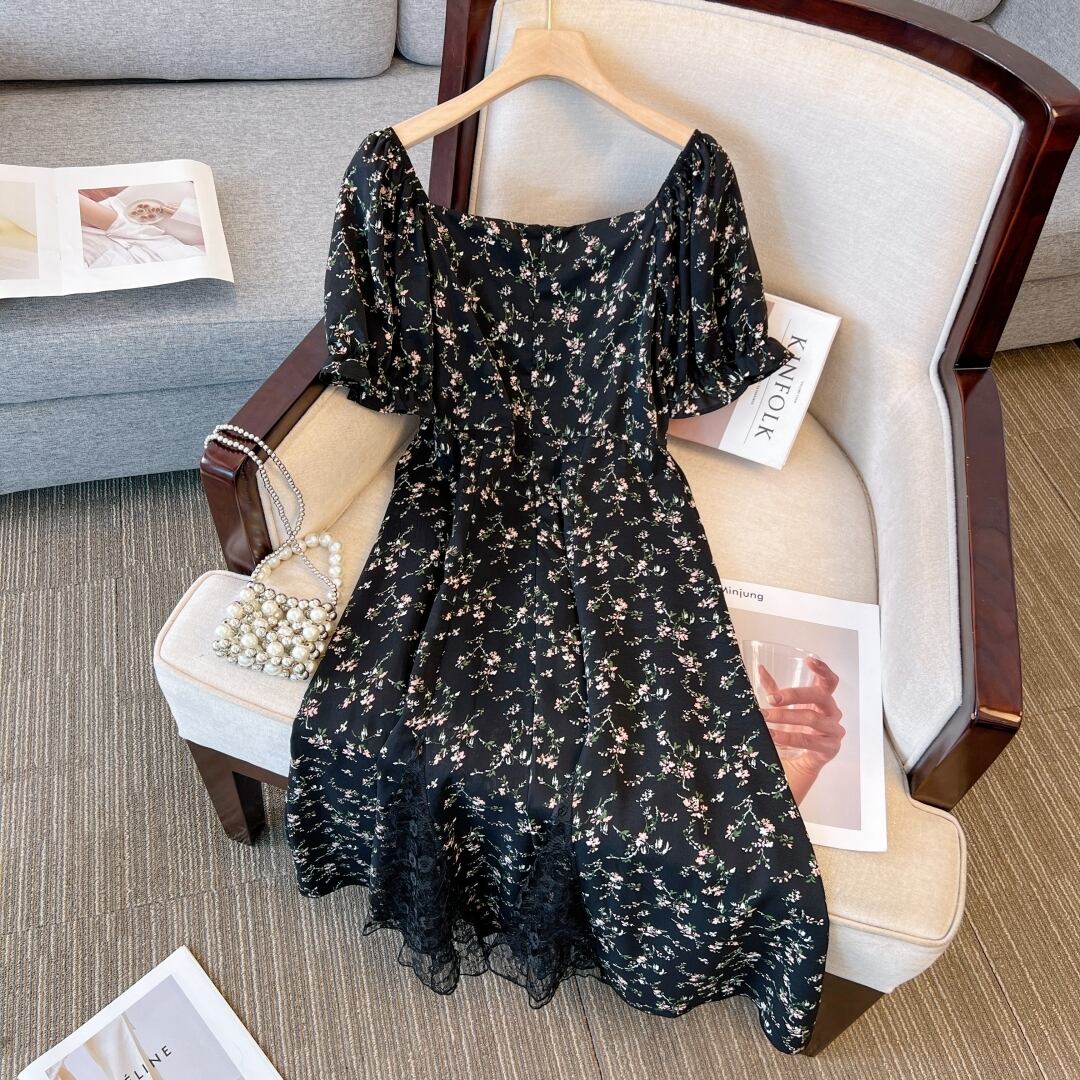 プラスサイズの婦人服 2023 夏服脂肪ファッションシックなフレンチフローラルドレスレースステッチデザインセンスドレス 大きめサイズ サマー 夏物 花柄 888411385679959