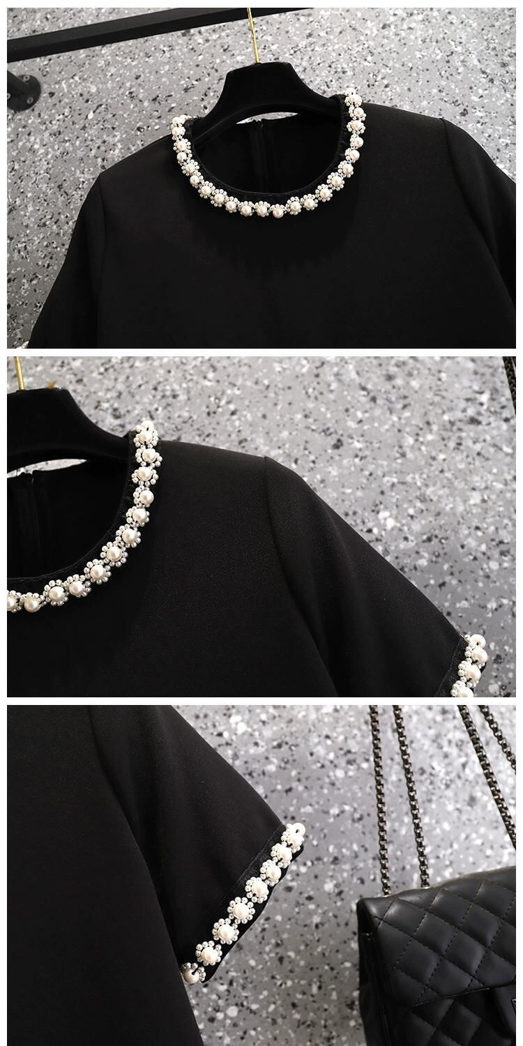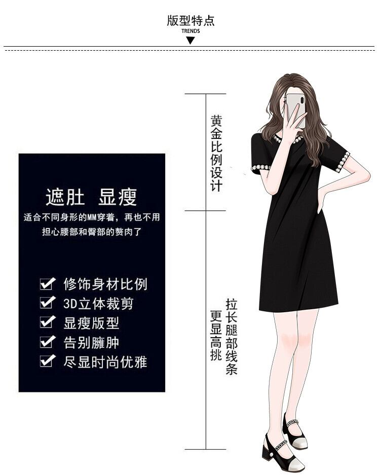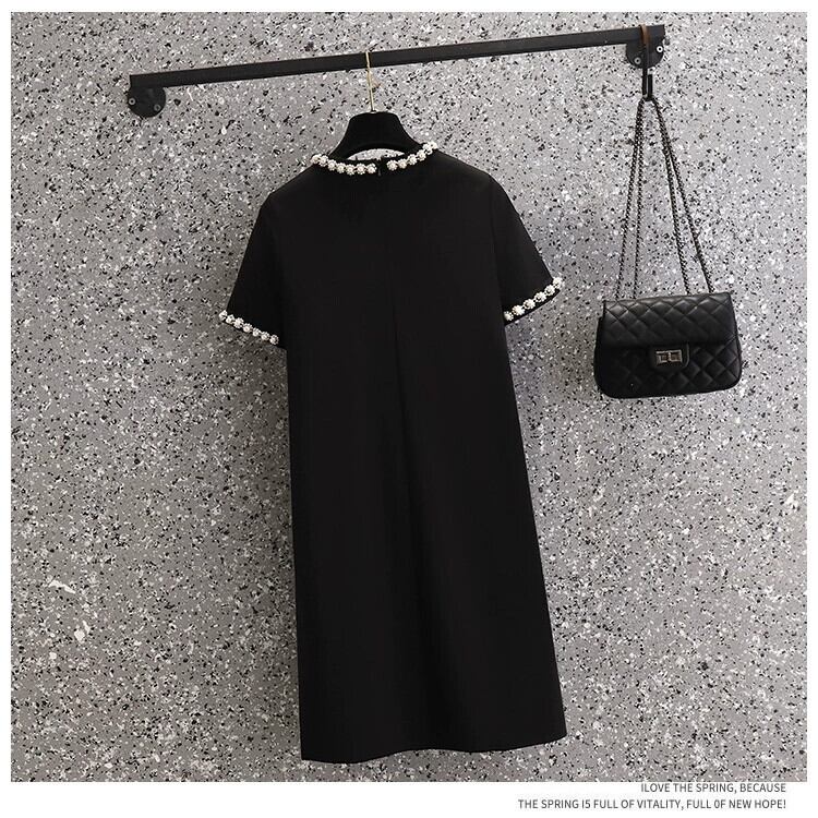 大きいサイズの婦人服 2023 夏服脂肪姉妹バージョンルーズで薄いスカート重工業ビーズシックなニッチドレス 大きめサイズ サマー 夏物 8884168897306133