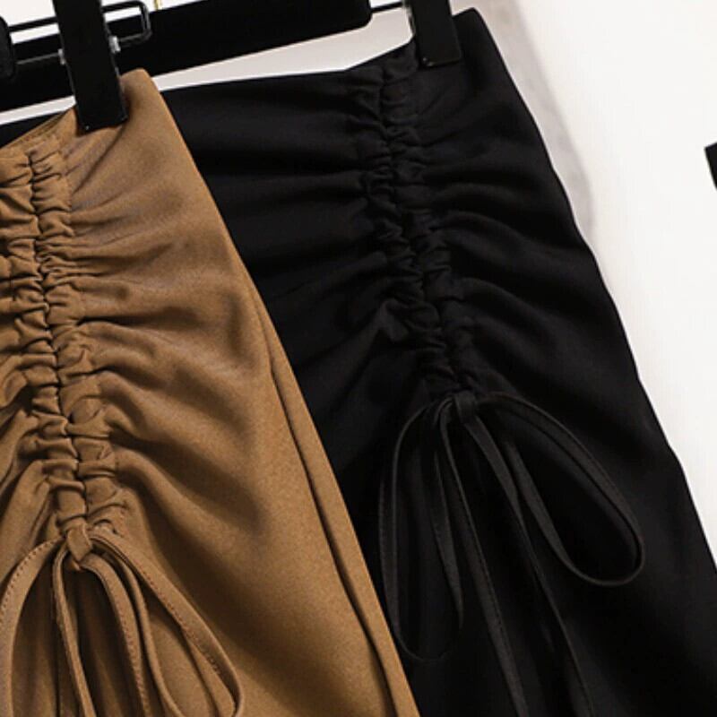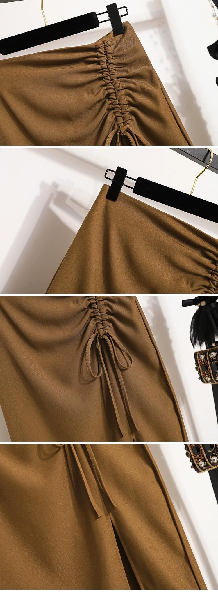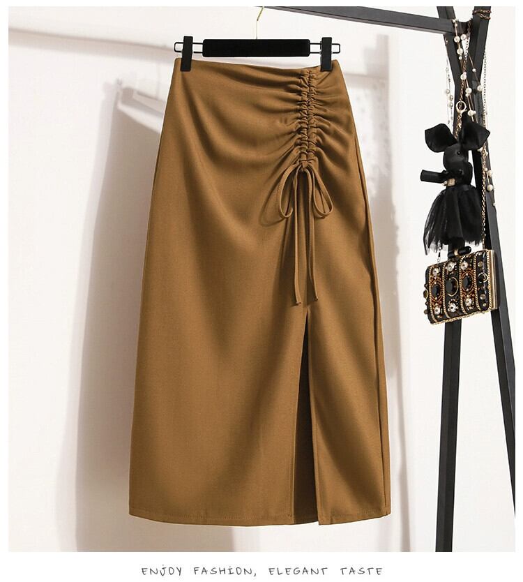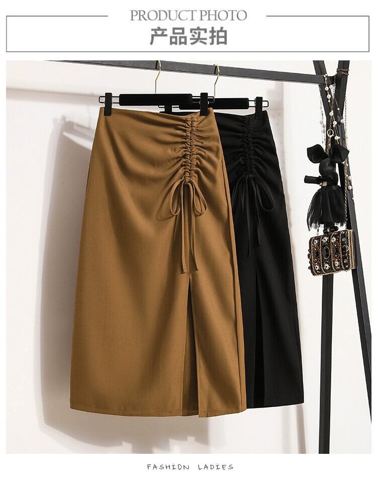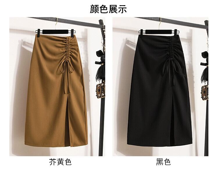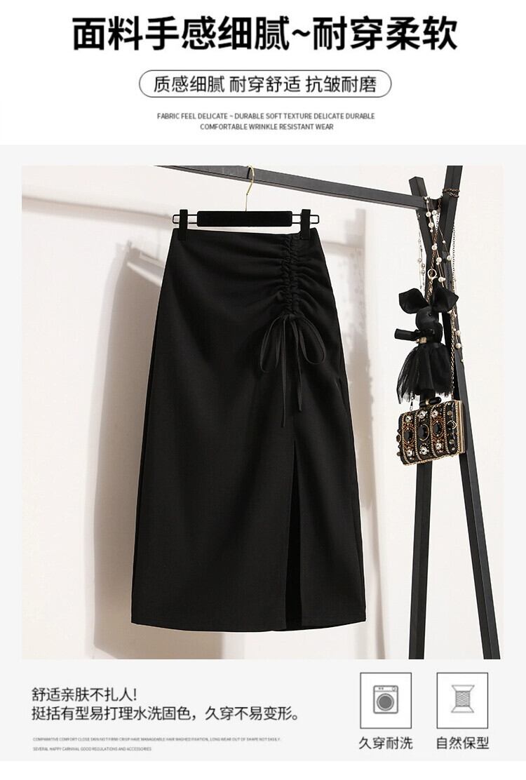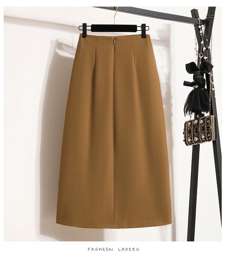 プラスサイズの婦人服 2023 夏服太い不規則なスリット A ラインミドル丈ハイウエスト股カバー無地スカート 大きめサイズ サマー 夏物 Aライン ソリッドカラー 8884159816257177