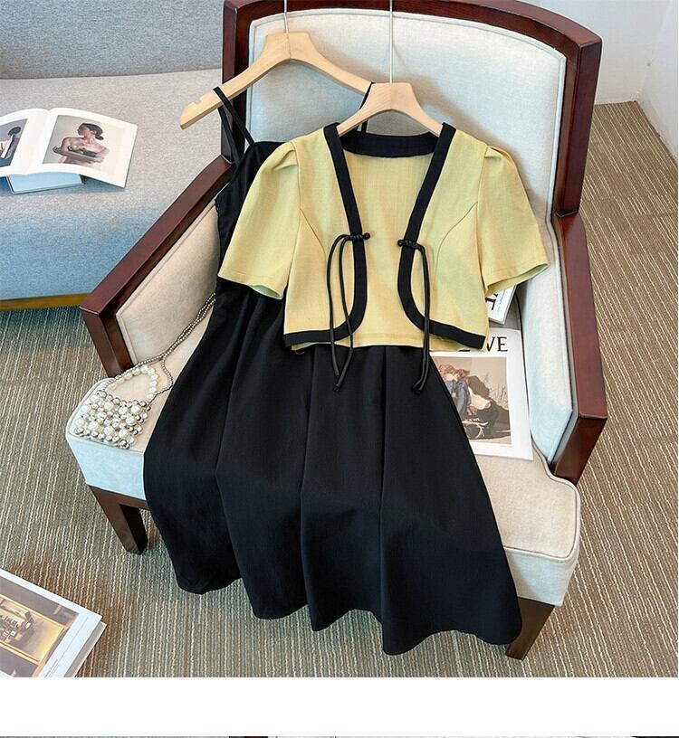 プラスサイズの婦人服 2023 夏服ファットシスターファッション気質薄いトップデザインセンスオールマッチサスペンダースカート 2 点セット 大きめサイズ サマー 夏物 8884135472904608